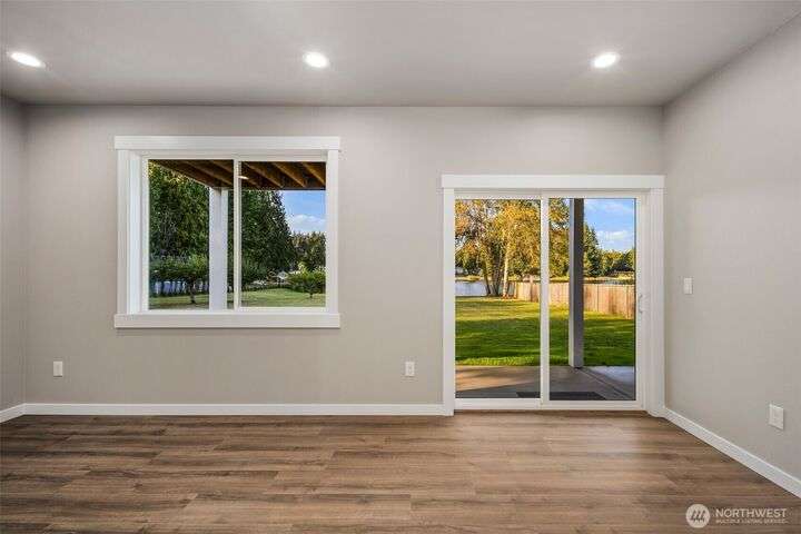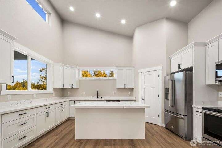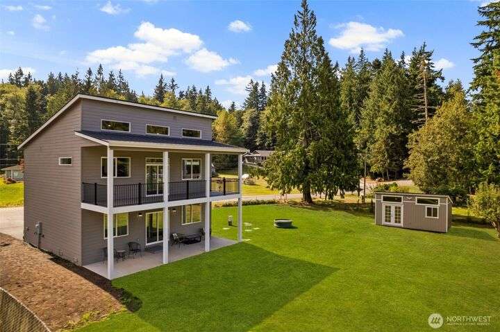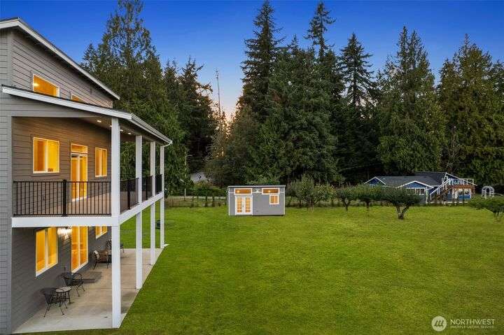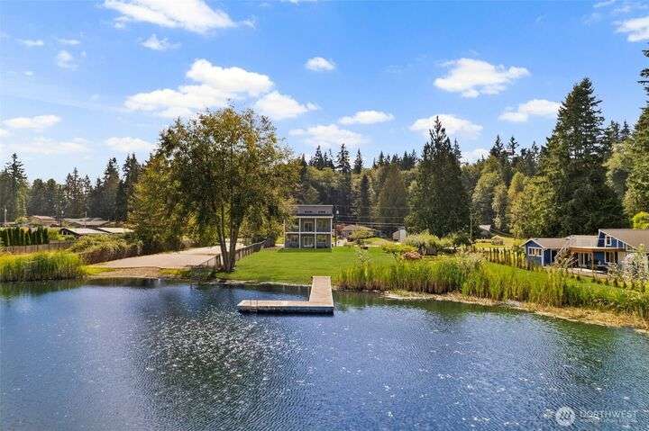 Lakefront luxury epitomized in this brand-new home on a rare double lot w/ 147 feet of private Lake Ketchum shoreline. Designed w/ soaring ceilings & a bright, open-concept. Chefs kitchen showcasing quartz slab counters, big island, high-end appliances, & walk-in pantry. Sleek finishes throughout, expansive windows frame stunning lake views, while indoor-outdoor living shines w/ a spacious covered deck & lower-patio. 2 bedrooms including a serene en-suite primary retreat, additional versatile office room, along with a downstairs rec-room & a finished studio outside- perfect for guests, creative pursuits, or a private retreat. Huge open yard leads to private dock to enjoy boating, swimming, fishing & relaxation. Life is better at the Lake!
