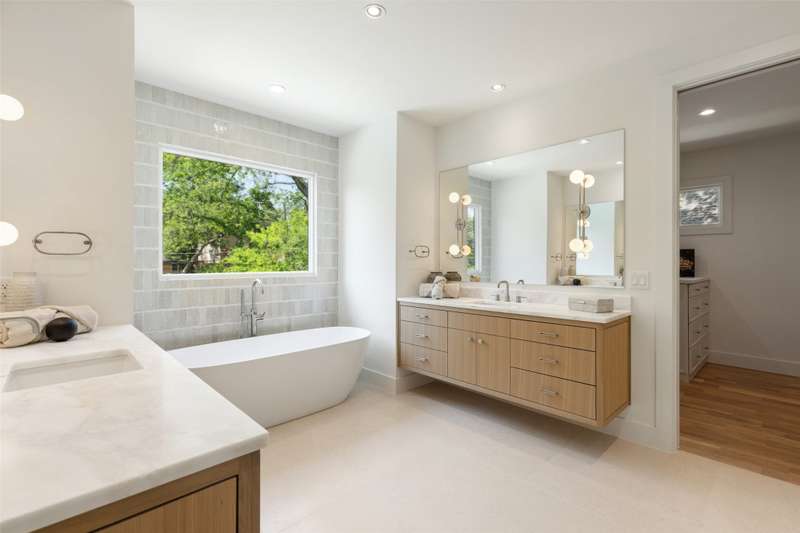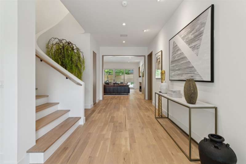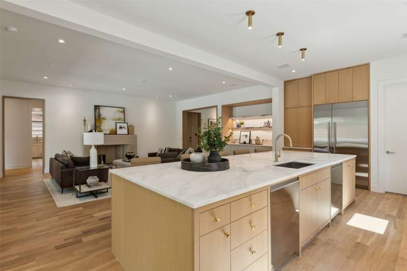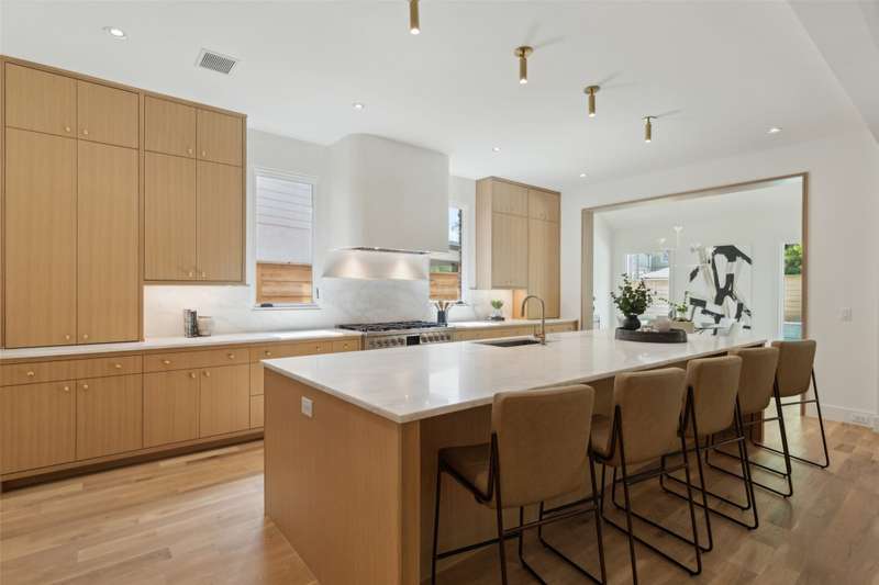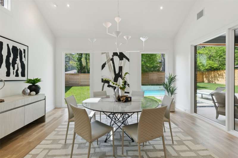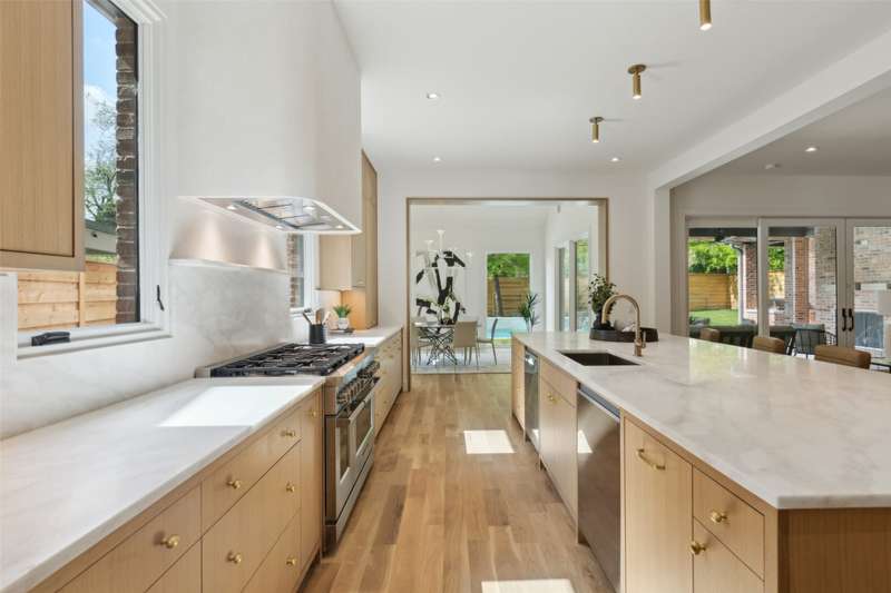 Experience modern elegance in this stunning Newport Group home, ideally situated in Lakewood. A dramatic formal entry with a sweeping curved staircase sets the tone for refined living, complemented by a private home office for todays lifestyle. The open-concept living, dining, and kitchen spaces are filled with natural light and framed by expansive windows overlooking the private backyard retreat. The chefs kitchen is a true centerpiece, featuring a professional-grade gas range, built-in refrigerator, dual dishwashers, abundant cabinetry, and a walk-in pantry complete with wine tower, ice maker, and drawer fridge. A guest suite with private bath, spacious mudroom with custom cabinetry, powder bath, and large laundry room complete the thoughtfully designed first floor. Upstairs, a vaulted second living area offers a versatile gathering space, while three secondary bedrooms each enjoy their own en-suite bath. The luxurious primary suite is a true sanctuary with vaulted ceilings, serene backyard views, and a spa-inspired bath showcasing dual vanities, soaking tub, oversized shower, and a custom walk-in closet with built-ins and a central island. The backyard is designed for year-round entertaining with a sparkling pool, grassy play space, outdoor fireplace, built-in grill, heaters, and retractable phantom screens. Additional highlights include wide-plank hardwood floors, second laundry room on the second floor, a three-car garage, and an unbeatable location just steps from White Rock Lake, the YMCA, and Tokalon Park.