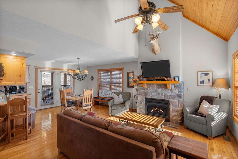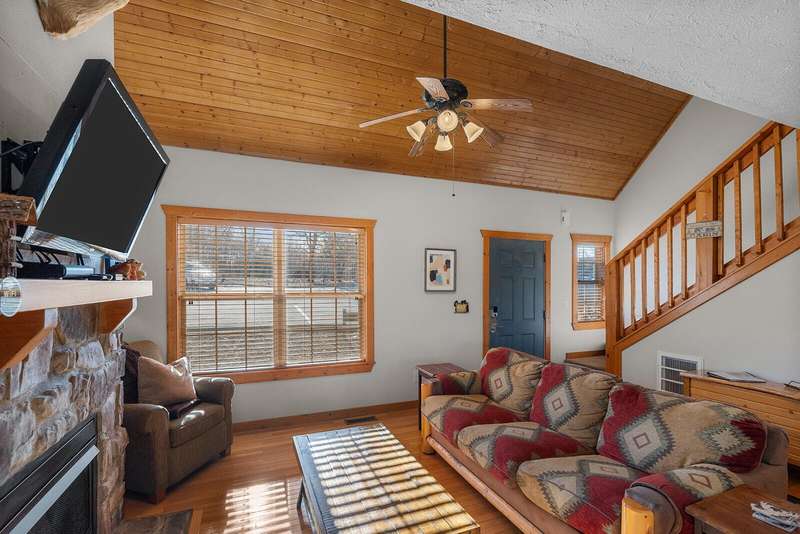Don't miss this coveted opportunity to own a beautifully furnished 1-bedroom, 2-bath lodge in the highly sought-after Stonebridge Village! Whether you're a first-time investor or a seasoned professional, this property is a perfect addition to your portfolio--or an ideal retreat for personal use.Step inside to find vaulted ceilings, hardwood floors, granite countertops, and a charming stone gas fireplace--all adding to the cozy and warmth feel of this lodge. The screened-in porch invites you to relax and soak in the serene natural surroundings.Located just steps from the catch-and-release pond, pool, pavilion, and playground, this home offers both convenience and resort-style living. Enjoy a delicious meal at Ledgestone Grill, just minutes away. Plus, Silver Dollar City and Table Rock Lake are within a short drive, while the excitement of Branson's entertainment strip--with world-class shopping, dining, and attractions--is just 10 minutes away.