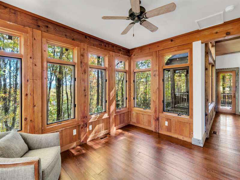 Tucked away in the heart of nature and bordered on three sides by conservancy land, this charming cabin offers the ultimate in privacy and serenity?yet is just a short drive to the Appalachian Trail and the beloved Max Patch bald. Situated on over an acre of land, this one-of-a-kind property is a true mountain sanctuary. Step inside to find timeless character throughout, including wide plank hardwood floors and a stunning open-concept grand room with a central two sided wood-burning fireplace?perfect for cozy nights and mountain mornings. The living area is framed by floor-to-ceiling windows that showcase breathtaking long-range mountain views. Thoughtfully designed with built-in storage and warm, rustic finishes, the cabin also features a bonus room with more panoramic vistas?ideal as a studio, office, or additional living space. Whether you're looking for a full-time residence, a private getaway, or a unique investment opportunity, this property blends comfort, charm, and unmatched natural beauty.