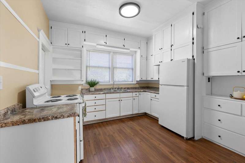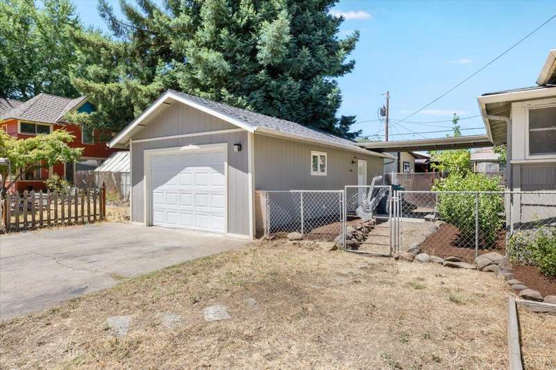 Charming 1910 Gem with Modern Updates & Original Character! Step back in time with this beautifully renovated 1,892 sq ft home. 4 bd/2 ba. Bedroom on main floor is also a great office space. Nestled on a corner lot, this classic residence combines original character—like built-ins, tall ceilings, & stunning hardwood floors & trim—with thoughtful modern updates including new light fixtures, bedroom flooring, countertops, upstairs bathroom cabinetry, kitchen cabinet doors & appliances. The spacious kitchen & oversized laundry room provide both functionality & charm. Enjoy year-round comfort with the brand-new ductless heating & cooling system. The covered breezeway leads to the detached garage, which includes a versatile shop/studio space perfect for hobbies or remote work-or potential for ADU conversion. Raised garden beds & a sweet front sitting porch! This is a rare opportunity to own a piece of history with all the conveniences of today!