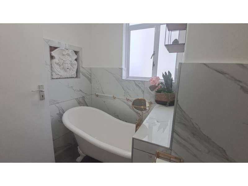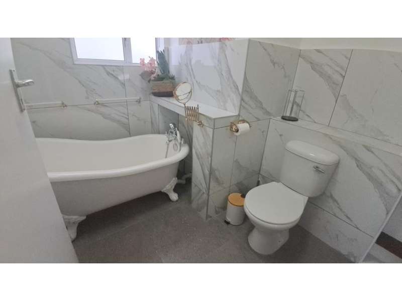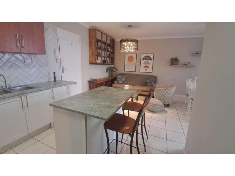 Located on the top floor on a quiet stretch of the Strand beachfront, you will find this renovated 3 bedroom apartment. It feels like you're living in a penthouse. Floor to ceiling windows on the Northern side provide stunning sunlight and offer magnificent views towards the Helderberg Mountain. Completely renovated kitchen with a stylish island and a freestanding gas stove. The laundry is conveniently located just around the corner and out of the way with space for a washer and a dryer (stacked configuration). Both bathrooms are fully renovated - the family bathroom in grey tones has a shower, toilet and double basins and the main en-suite in Marble tones is like stepping into a luxurious spa, complete with a Victorian slipper bath. All three bedrooms have built in storage and enjoy abundant sunlight. There is secure, off street, covered parking for one vehicle and plenty of visitors parking infront of the building. Tenanted until Nov 2025