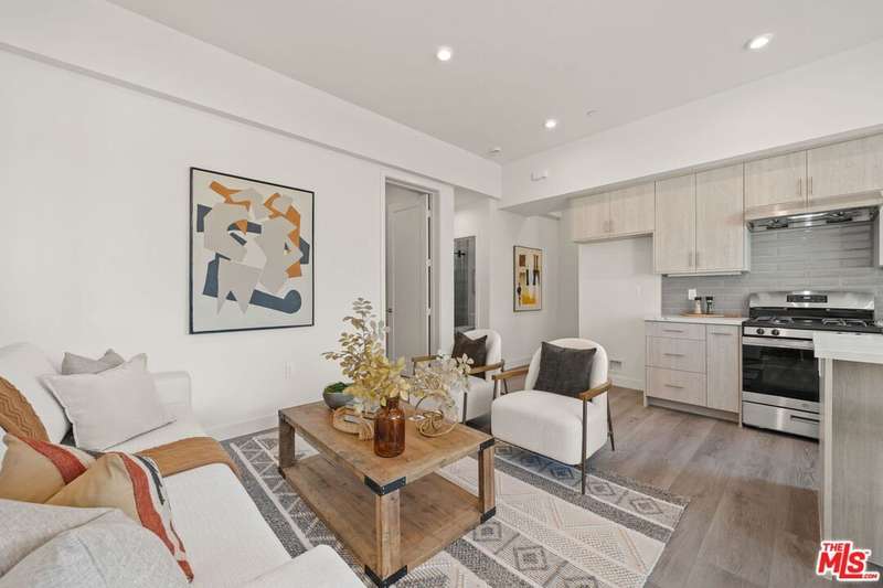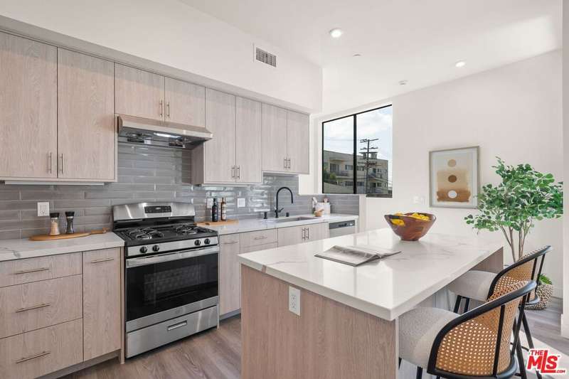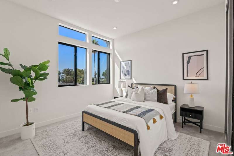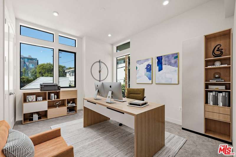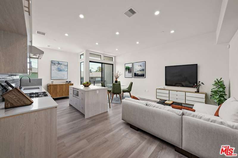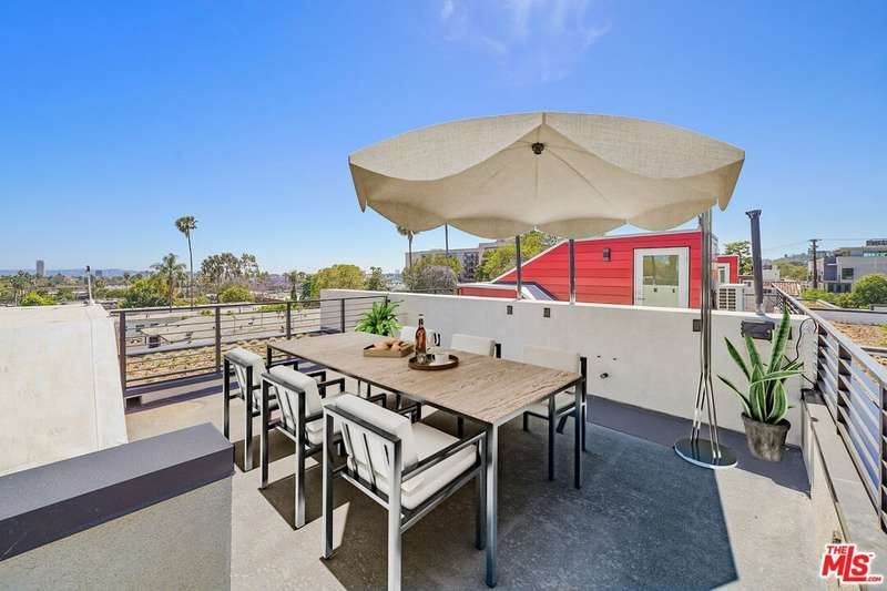 Offered for sale at $1,399,000 or for lease at $6,400/month. Tucked at the end of the building for added privacy, Residence 1204 enjoys open exposure on three sides, flooding the home with natural light throughout the day. This 3-bedroom, 3-bathroom residence spans 1,670 square feet and lives large with elevated finishes, thoughtful layout, and oversized windows in every room. The entry level features a private two-car garage with direct access into the home. Upstairs, the main living area boasts an open-concept layout with a sleek, modern kitchen outfitted with custom cabinetry and high-end appliances perfectly anchoring the bright living and dining areas. A full bathroom and versatile third bedroom ideal as an office, guest suite, or gym complete this level. On the top floor, the serene primary suite includes a spa-like bath, a spacious walk-in closet, and a private balcony that welcomes fresh air and treetop views. A secondary bedroom with its own walk-in closet sits across from a full hallway bath and a conveniently located laundry closet.Crowning the home is a generous private rooftop patio perfect for relaxing or entertaining with sweeping views of the Hollywood Sign and vibrant city sunsets. Whether dining al fresco or lounging under the stars, this outdoor space is a true highlight.Located in the heart of West Hollywood, you're just moments from the best of the cityMelrose Avenue, Santa Monica Boulevard, and neighborhood hotspots like Catch, Craig's, and the Design District. Residence 1204 is a rare opportunity to own or lease a designer home that embodies both elevated living and the energy of WeHo