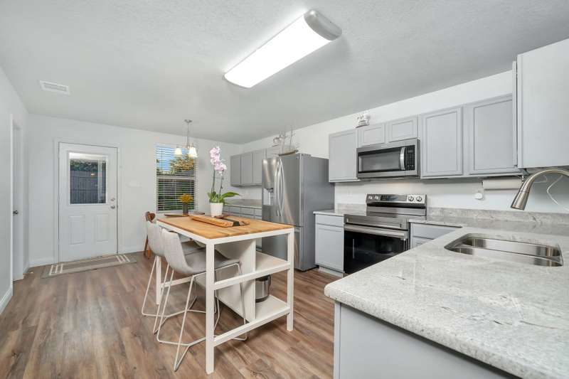 Welcome to this stunning 3-bedroom, 2-bath home offering the perfect blend of comfort, style, and convenience. Located in a desirable Little Elm neighborhood just minutes from dining, shopping, and 7 minutes from Lake Lewisville!Step inside to an inviting open floor plan with soaring ceilings and natural light throughout. The spacious kitchen features granite countertops, stainless steel appliances, and overlooking the living and dining areas ideal for entertaining family and friends.The primary suite offers a peaceful retreat with a spa-like ensuite bath, dual vanities, and a walk-in closet. Youll find two additional bedrooms and a full bathroom.Enjoy evenings outdoors in your private backyard, ready for relaxation or gatherings. With modern updates and a prime location, this Little Elm gem is move-in ready and waiting for its next chapter! Updates include LVP throughout home, double gate to help with boat storage, HVAC and roof replaced in the last couple of years.