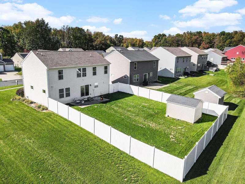 Welcome to 264 Beymoure Drive, a beautifully upgraded newer home that blends modern comfort, quality craftsmanship, and unbeatable value in one exceptional package. Located in highly desirable Oshtemo Township and Kalamazoo Promise qualified, this residence offers an ideal balance of elegance, efficiency, and convenience, just minutes from shopping, dining, and US-131. Step inside to discover an inviting open-concept design with thoughtful details throughout. The kitchen features designer cabinetry, granite countertops, a center island, and stainless-steel appliances, including a gourmet refrigerator with soft-close drawers. The adjoining dining area and living room provide the perfect setting for both everyday living and entertaining. The spacious primary suite includes a double-vanity bath with granite countertops, tile flooring, and a custom walk-in closet. Both full bathrooms feature upscale finishes that create a polished, spa-like feel. The main-floor laundry room, finished garage, and large breezeway entry add both convenience and functionality to the floor plan. Downstairs, the basement has been insulated and mostly studded, offering excellent potential for future expansion. The space includes an egress window and roughed-in plumbing for an additional bath, making it easy to finish and add extra living space or a recreation area. Outside, you'll appreciate the impressive curb appeal with stone accents, landscaping, an extended concrete patio, and a full irrigation system. A new shed and white vinyl privacy fence enhance both beauty and practicality. Additional upgrades include a smart home security and thermostat system, custom bath amenities, and many other premium enhancements. The washer and dryer are included, making this a true move-in-ready home. Experience modern living in a convenient and peaceful location. Schedule your private showing today and discover the comfort, quality, and value that make this home an exceptional find.