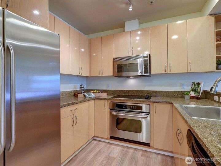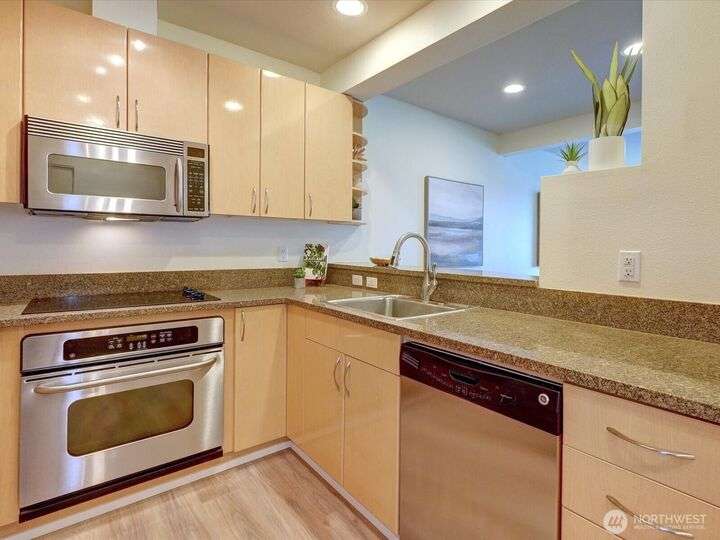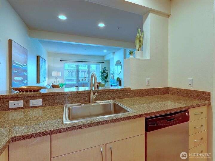 City Living at It's Best w/ Commencement Bay Views. Spacious & Refreshed 2 Bedrooms, 2 Bath Stadium District Condo Includes Granite Counters & European Box Cabinets, New Plank LVP, Stainless Appliance Package, Primary En Suite w/Walk in Closets, Guest Suite w/ Private Exterior Access Living Room w/Gas Fireplace for Cozy Evenings, Laundry Room (Comes with W/D),Balcony w/Storage Closets, Secure/Gated Covered Garage Parking. Secure Building & Elevators. Beautiful Turn Key Condo, Well Managed & Maintained Building, No Special Assessments, Healthy Reserves & Low HOA Fees Covers Most Utilities. Discover Vibrant Stadium District w/Lite Rail, Shops & Trendy Restaurants. Great Walkability