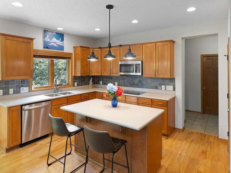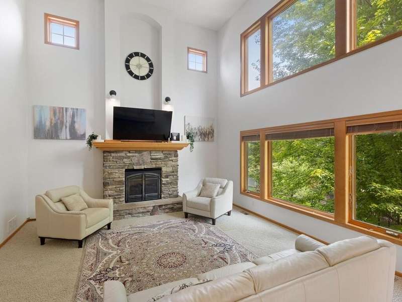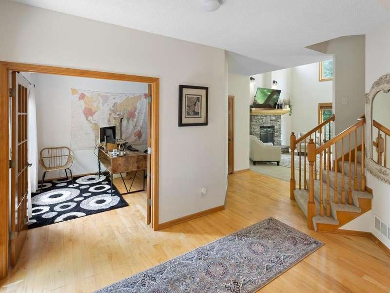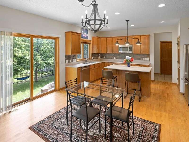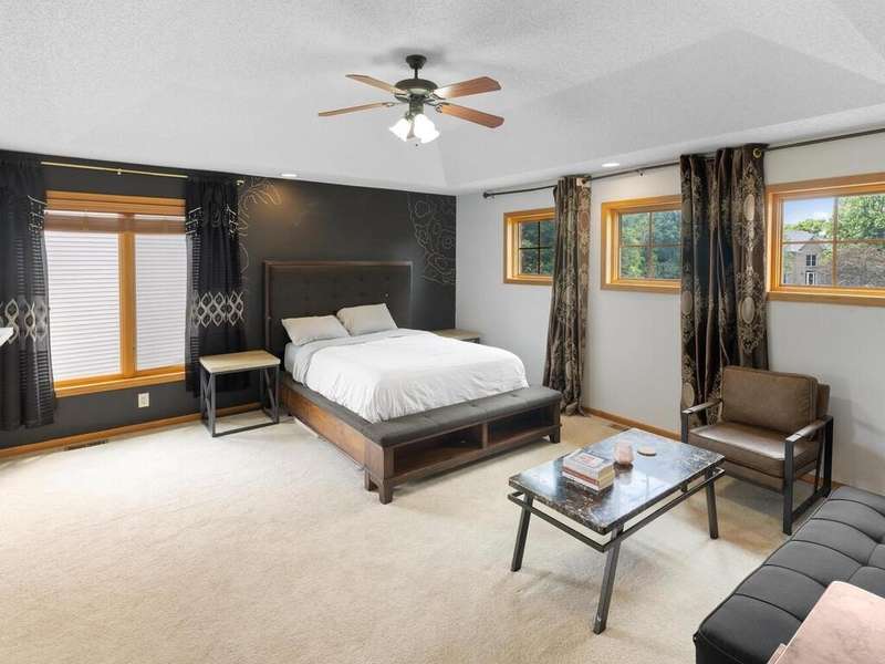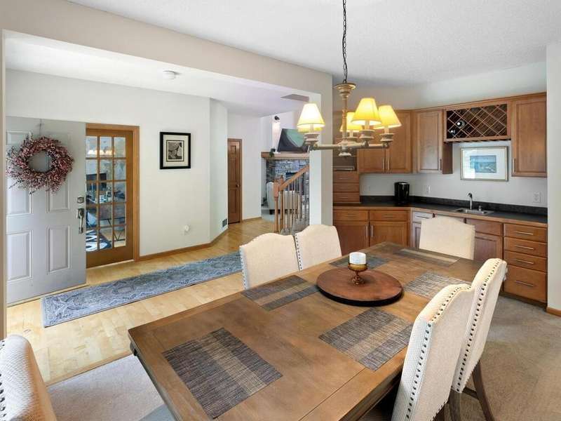 Welcome to this stunning two-story executive home in the sought-after Carver Bluffs neighborhood! This spacious home offers 4 bedrooms conveniently located on the upper level. The heart of the home features a center-island kitchen that flows seamlessly into the living room—perfect for modern living and entertaining. A main-level office provides a quiet work-from-home space, while the formal dining room with built-in wet bar adds elegance to every gathering. Step out from the walk-out lower level to a beautifully designed paver patio and enjoy the fenced-in, flat backyard—ideal for play or relaxation. The lower level also boasts a guest suite and second wet bar, creating the ultimate entertaining space. A perfect blend of comfort, style, and functionality!