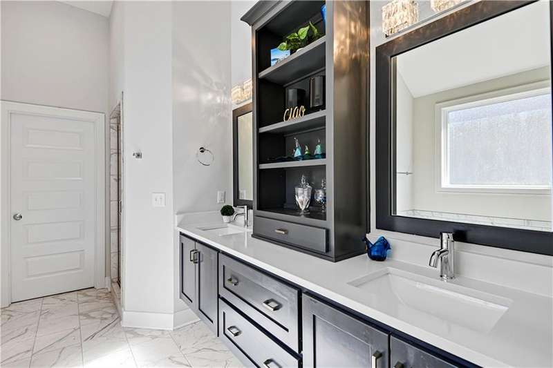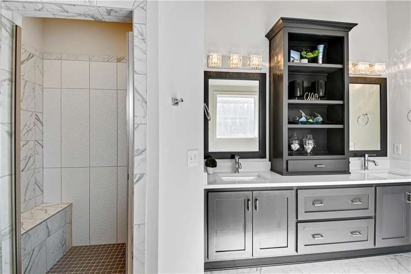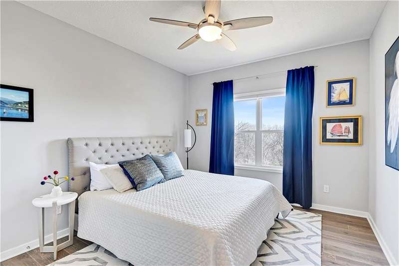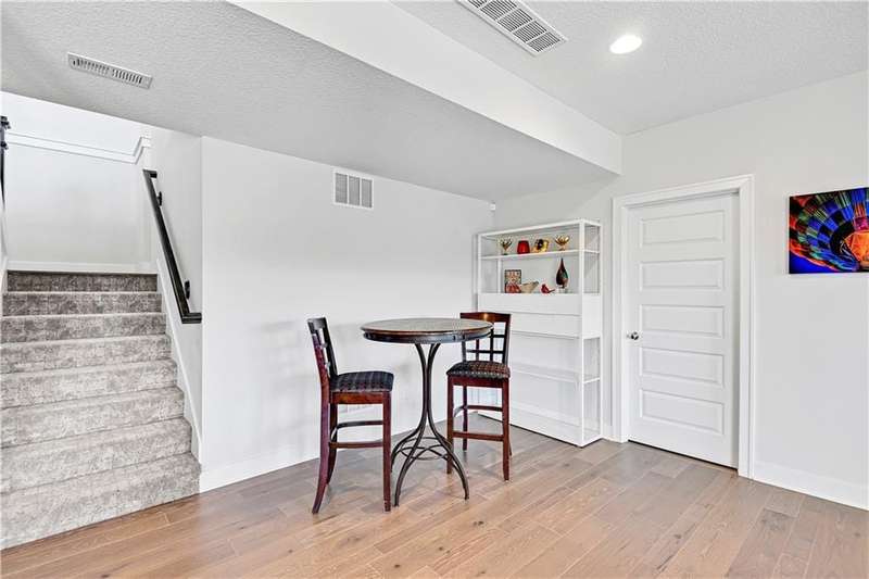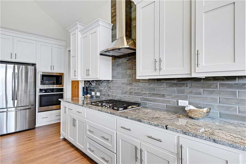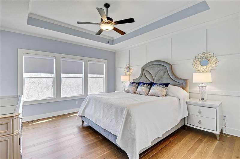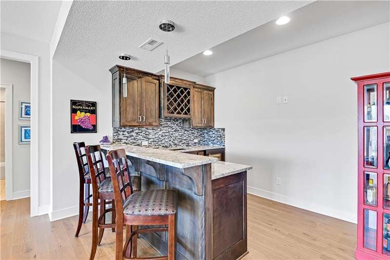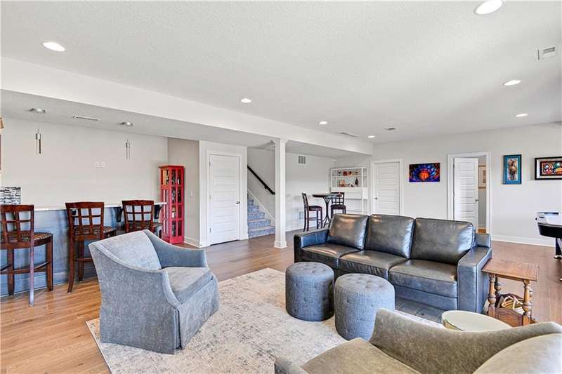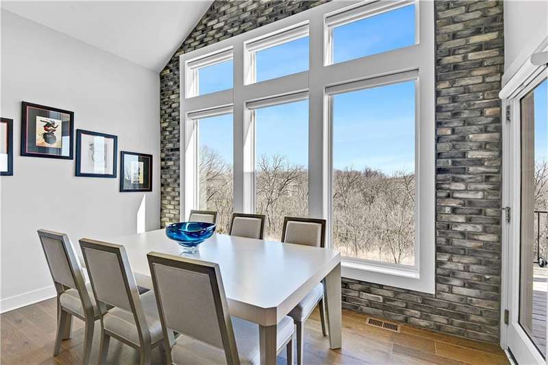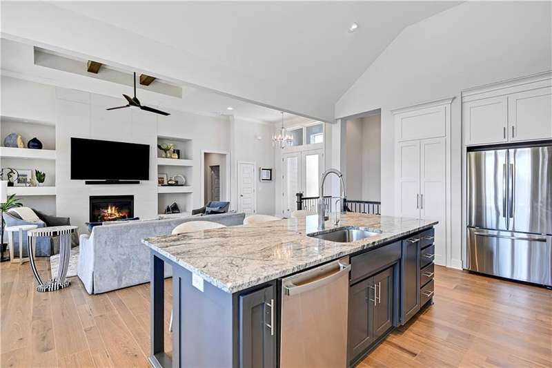 Stunning Reverse 1.5-Story in coveted Thousand Oaks. Step into luxury with this like-new, 4 bedroom, 3.1 bathroom home by New Mark Homes, packed with high-end upgrades with hardwoods throughout. Nestled on a prime lot overlooking wooded green space, this home offers breathtaking views from its floor-to-ceiling windows with automatic blinds, flooding the open-concept living space with natural light. The gourmet kitchen is a chef's dream, featuring a gas cooktop, oversized island with soft water system and filter at the sink and walk-in pantry, perfect for entertaining. The great room boasts a striking floor-to-ceiling stone fireplace, creating a warm and inviting atmosphere. The primary suite is a private retreat, while a second main-level bedroom doubles as an ideal home office.The walk-out lower level is built for relaxation and entertaining, complete with a full bar, fireplace, expansive family room, and two additional bedrooms. There's also plenty of storage space. Step outside to enjoy the peaceful patio and lush surroundings. Located in the highly desirable Thousand Oaks community, residents enjoy multiple pools, scenic walking trails, and numerous other amenities. Don't miss your chance to own this exceptional home in Parkville's premier neighborhood!