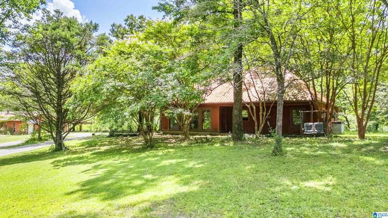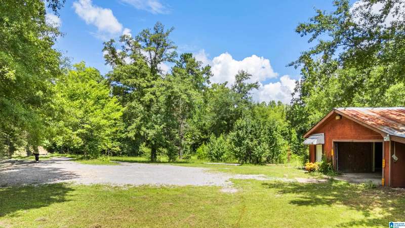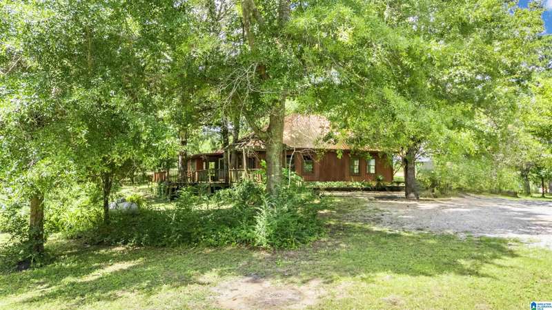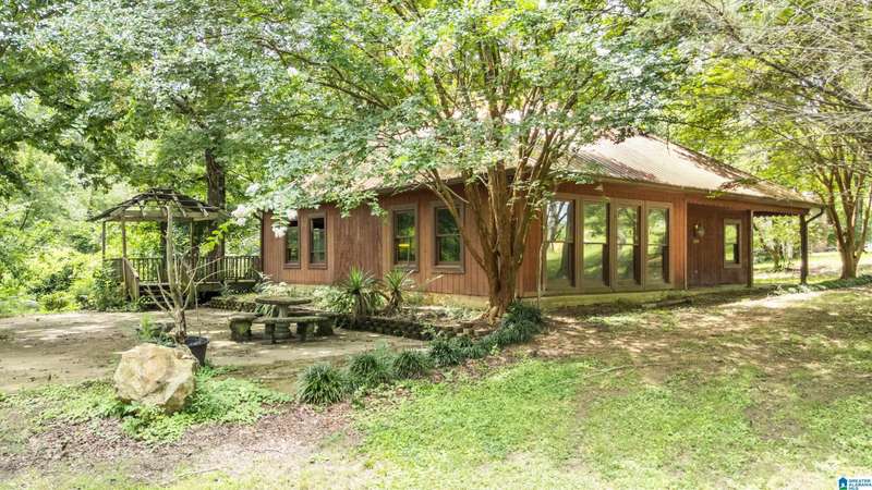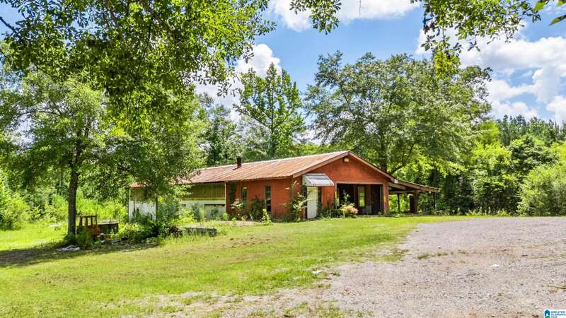 Discover a hidden gem in Calera on 3.23 private acres! This 1990-built home is a diamond in the rough, ready for your vision and updates. Featuring an open kitchen/living room layout with granite countertops, a large work island, and eating area. The spacious living room includes a unique spiral staircase leading to bonus rooms upstairs. The main-level primary suite offers an en suite bath, walk-in closet, and access to a screened porch. Enjoy peaceful views from the wide back deck overlooking mature trees, a creek, and the expansive backyard. Metal roof adds durability, though the home currently has no working HVAC. A massive 2,400 sq ft detached workshop includes garage parking, office space, and multiple large doors for flexibility. With space to grow and personalize, this property is a rare opportunity to create your dream retreat. Needs updating. Bring your creativity and make it your own!