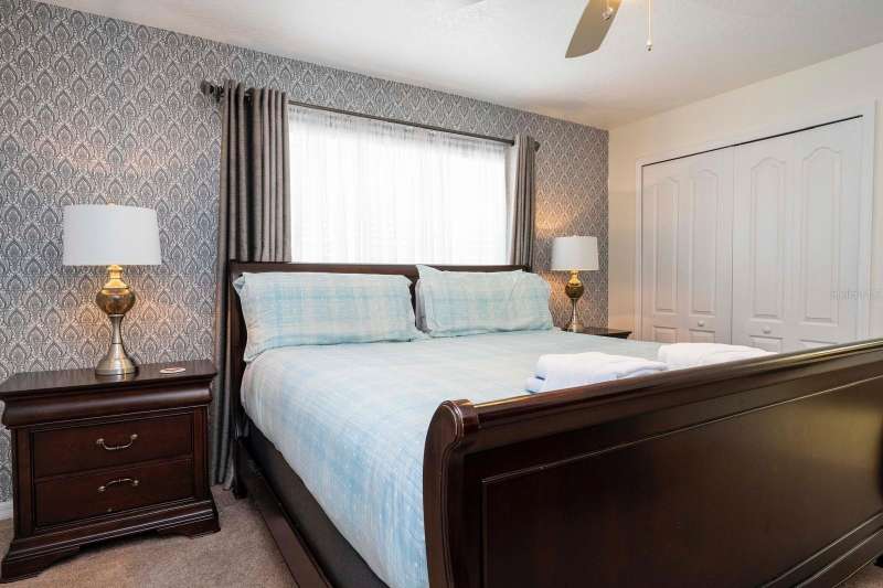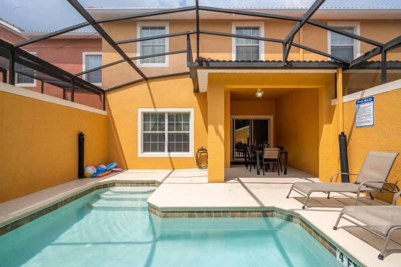 Beautiful townhouse with 4 bedrooms and 3 bathrooms. It is fully furnished and decorated with everything you need to start your business or to enjoy your vacation. One downstairs bedroom and three additional bedrooms upstairs, laundry unit, private pool and plenty of room for entertainment. This wonderful resort living home is located in Kissimmee. Paradise Palms resort HOA includes cable, phone, high speed internet, trash, 24/7 manned security guard, common grounds maintenance and Landscaping. Community has a convenience store, theater, arcade, fitness facility, business center, lounge, sand volleyball, tennis court, lagoon style pool, jacuzzi and concierge assistant. The property is ready to move in or to rent it out. Its been very well maintained and it's in excellent condition. The community is located a few minutes from Disney, grocery stores, gas stations and all the restaurants and stores for the best time of your life! Schedule a visit.