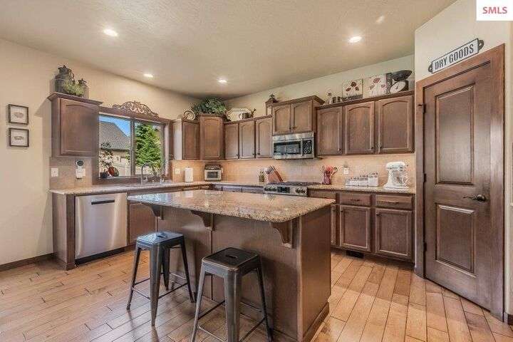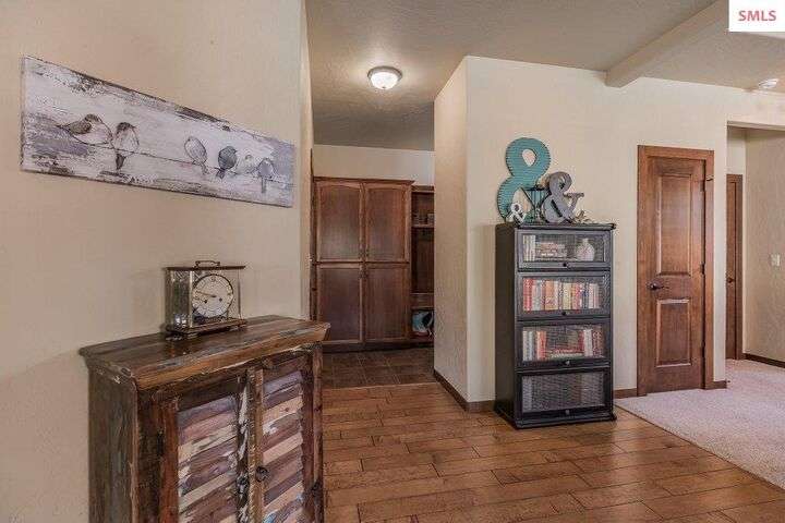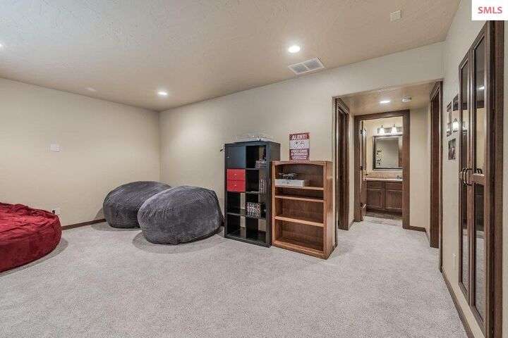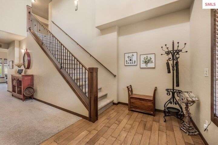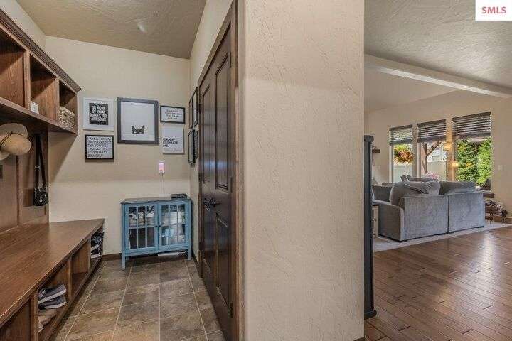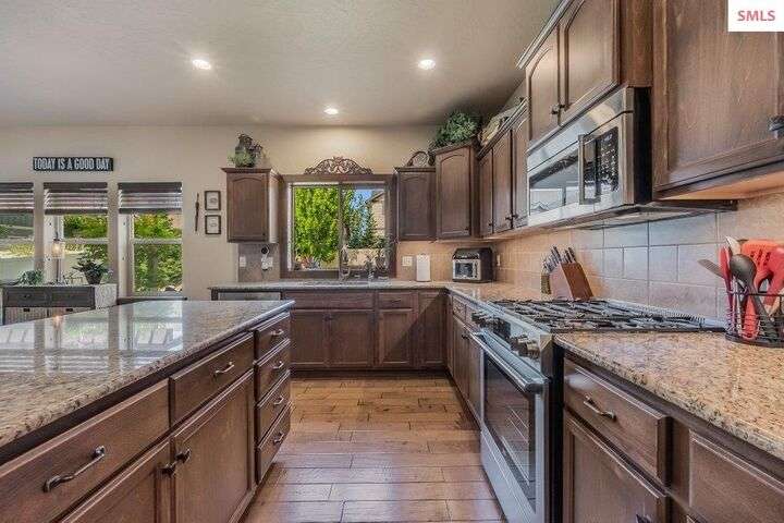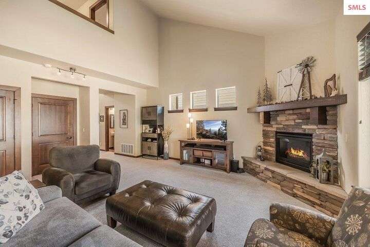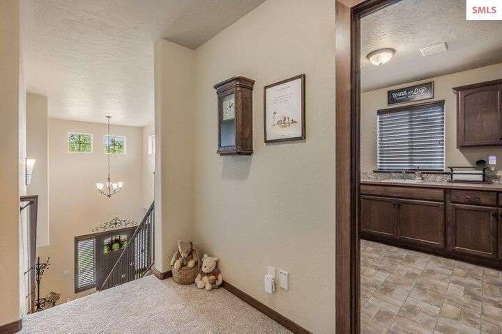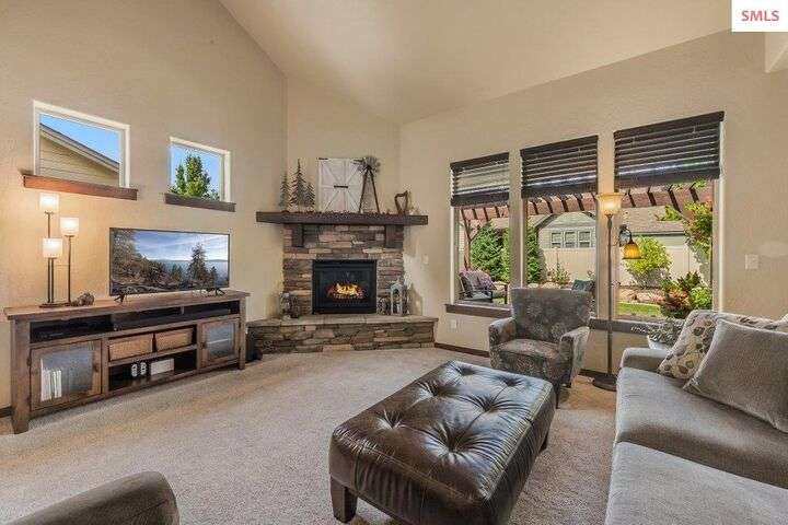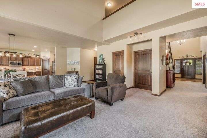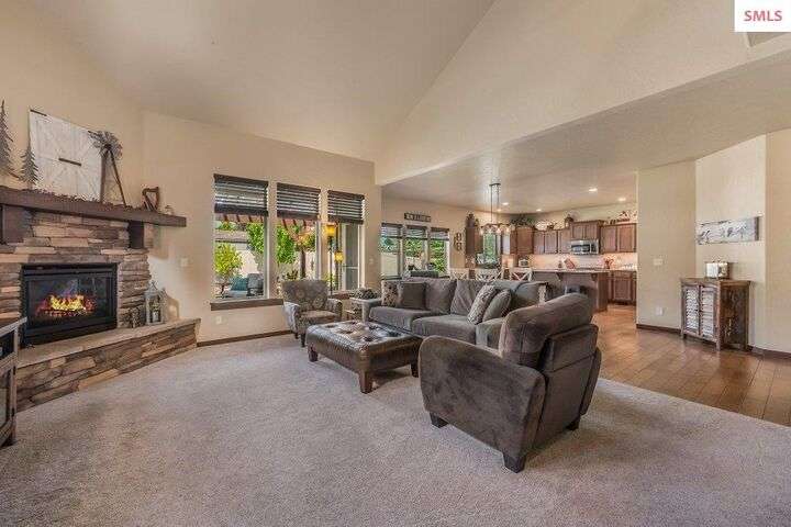 A TASTE OF GORGEOUS - Immaculate Aspen Home nestled in Coeur d'Alene Place! No detail was spared in this quality home. Built in 2009, this home shows like new. Enjoy a large, open floor plan with spacious rooms and thoughtful details throughout. The main floor features an office near the entry way complete with built-in cabinets and a desk. The kitchen, dining and living room have an open, inviting feel. The living room offers soaring ceilings, a gas fireplace with a rock surround and wood beam mantle, and tons of windows allowing for abundant natural light. The kitchen features engineered hardwood flooring, granite counters, new Beko appliance suite, undercabinet lighting, touchless faucet, walk-in pantry and more. Upstairs you'll find a spacious laundry room, along with the master bedroom suite and two bedrooms. The oversized master bedroom offers a vaulted ceiling, large walk-in closet with abundant shelving, spacious bathroom with a shower, soaking tub, and a dual sink vanity. The basement offers a theater room that is wired for surround sound, and is complete with a built in component cabinet. The fitness area features ballet safety-mirrors and barre, along with an attached swing that would be great for relaxing, or reading a book. The basement also has a bedroom and full bath, along with the utility room. The garage is finished, painted and includes a pulley storage system, tire storage racks and newer smart garage door openers. Enjoy your time outdoors on the Trex deck complete with a freshly-stained pergola. Landscaping has been professionally updated and includes raised garden beds, a berry patch and fruit trees. Both yards are fully sprinklered and on drip systems with a smart Rachio controller. Top it off with a brand new 97% furnace and AC, central vac that serves the house and garage, Reme Halo air filtration system, and so much more. This home is truly turn key and a must see!