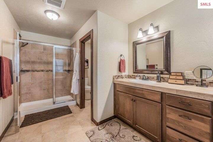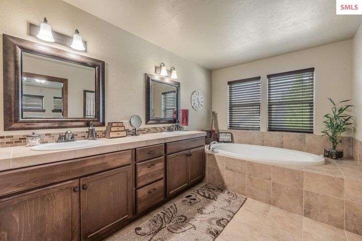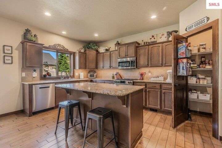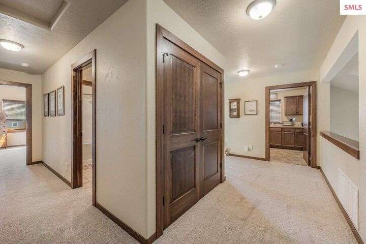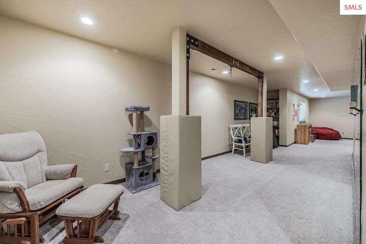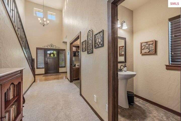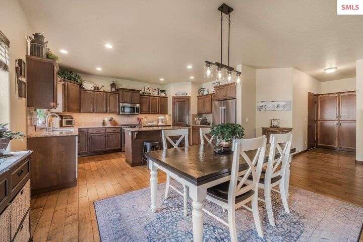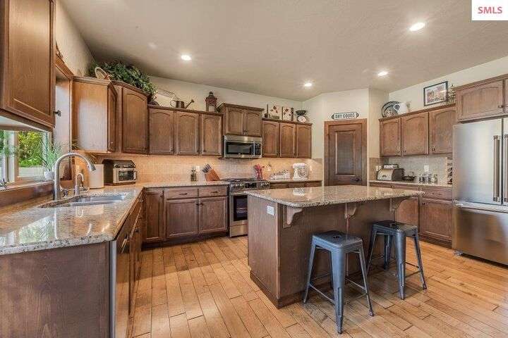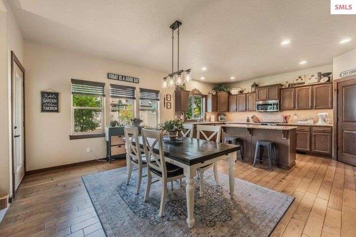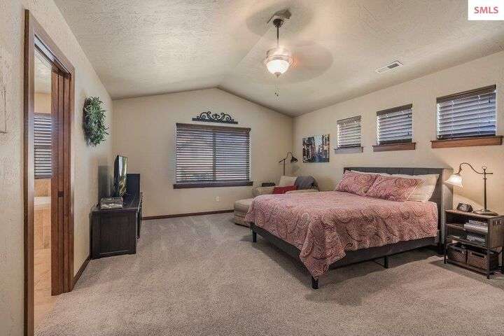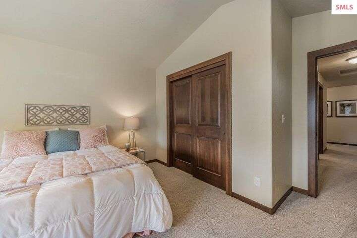 A TASTE OF GORGEOUS - Immaculate Aspen Home nestled in Coeur d'Alene Place! No detail was spared in this quality home. Built in 2009, this home shows like new. Enjoy a large, open floor plan with spacious rooms and thoughtful details throughout. The main floor features an office near the entry way complete with built-in cabinets and a desk. The kitchen, dining and living room have an open, inviting feel. The living room offers soaring ceilings, a gas fireplace with a rock surround and wood beam mantle, and tons of windows allowing for abundant natural light. The kitchen features engineered hardwood flooring, granite counters, new Beko appliance suite, undercabinet lighting, touchless faucet, walk-in pantry and more. Upstairs you'll find a spacious laundry room, along with the master bedroom suite and two bedrooms. The oversized master bedroom offers a vaulted ceiling, large walk-in closet with abundant shelving, spacious bathroom with a shower, soaking tub, and a dual sink vanity. The basement offers a theater room that is wired for surround sound, and is complete with a built in component cabinet. The fitness area features ballet safety-mirrors and barre, along with an attached swing that would be great for relaxing, or reading a book. The basement also has a bedroom and full bath, along with the utility room. The garage is finished, painted and includes a pulley storage system, tire storage racks and newer smart garage door openers. Enjoy your time outdoors on the Trex deck complete with a freshly-stained pergola. Landscaping has been professionally updated and includes raised garden beds, a berry patch and fruit trees. Both yards are fully sprinklered and on drip systems with a smart Rachio controller. Top it off with a brand new 97% furnace and AC, central vac that serves the house and garage, Reme Halo air filtration system, and so much more. This home is truly turn key and a must see!