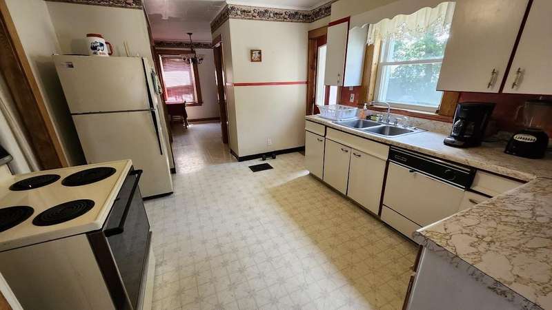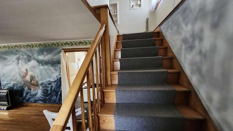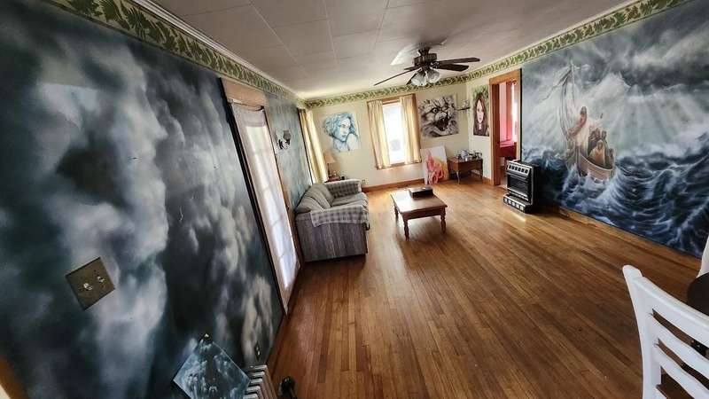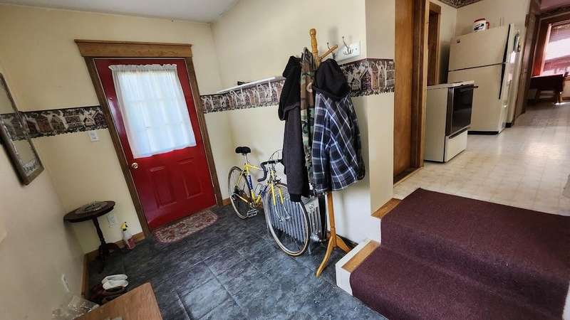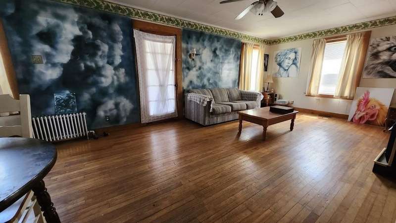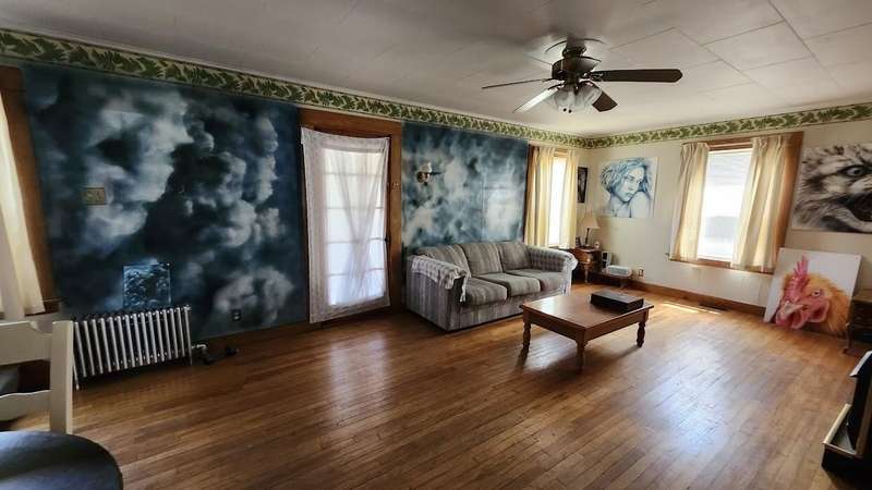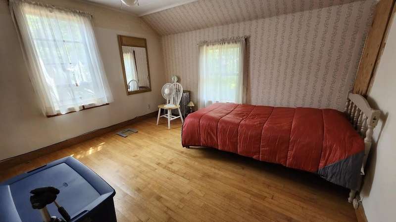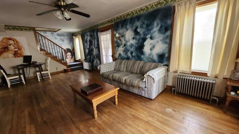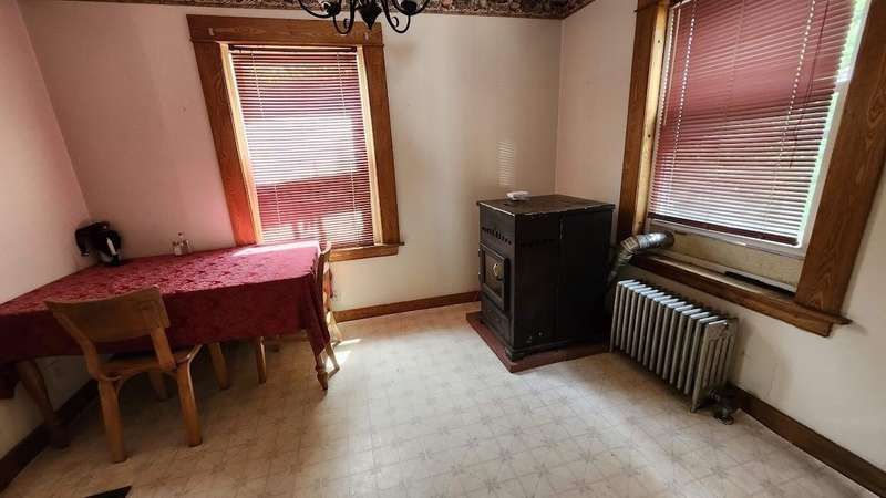 4 BED, 1.5 BATH Colonial -- Stone House with paved driveway and garage with nice level backyard. Home is very comfortable offering two nice entry areas; one glassed-in porch and one side entry off the driveway for convenience. Home has supplemental heating with hot water steam radiator, pellet stove, and wood stove options. Tall ceilings, wood floors, walk-up attic space, metal roof, and large rooms. COME SEE!!