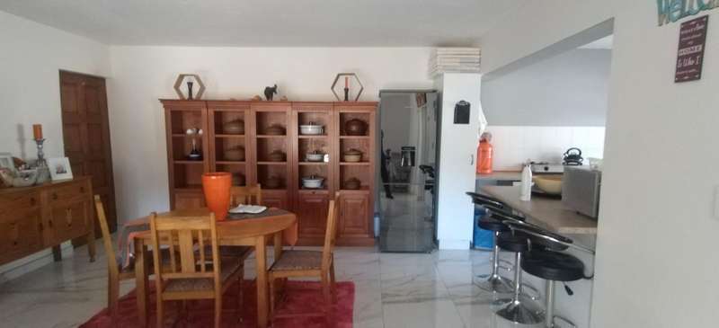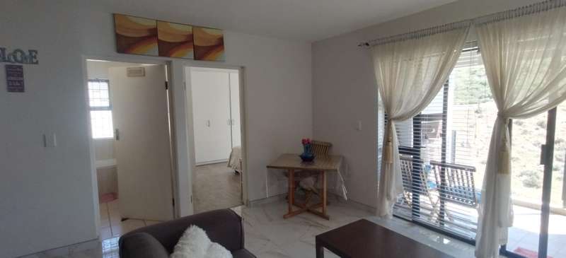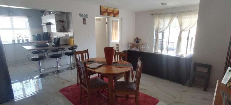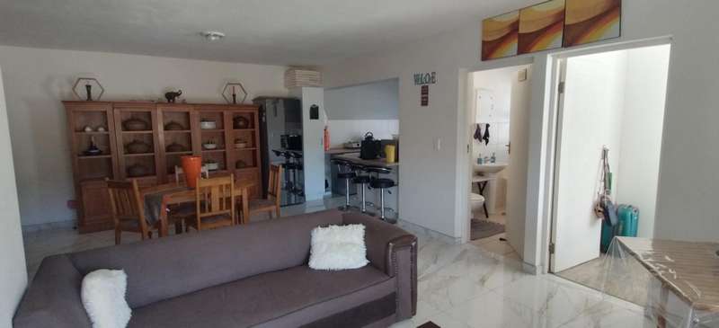 Spacious Open plan living design seamlessly connects the Kitchen with built in cupboards ,Dining area and Lounge area creating a warm and inviting atmosphere perfect for entertaining or relaxing .Ample storage in the bedroom with plenty of built in cupboards ,sliding door leading to the balcony with built in braai area ,slightly sea views .