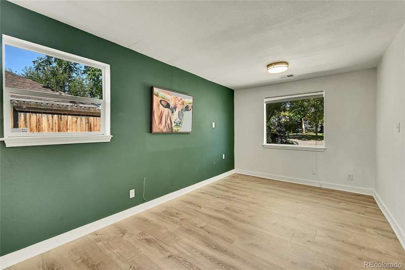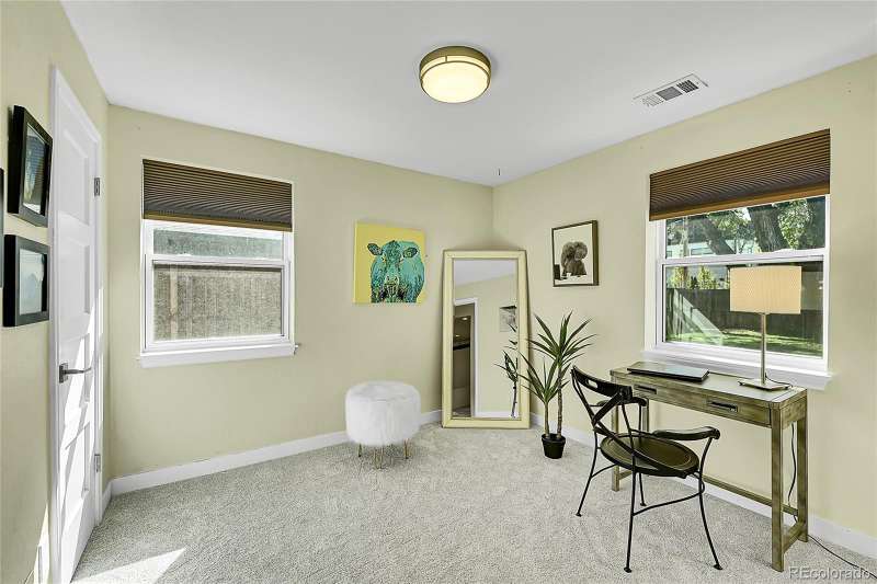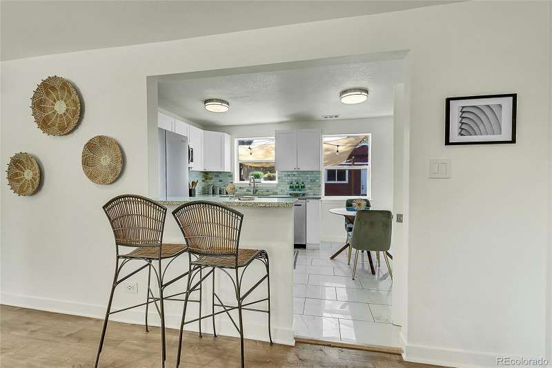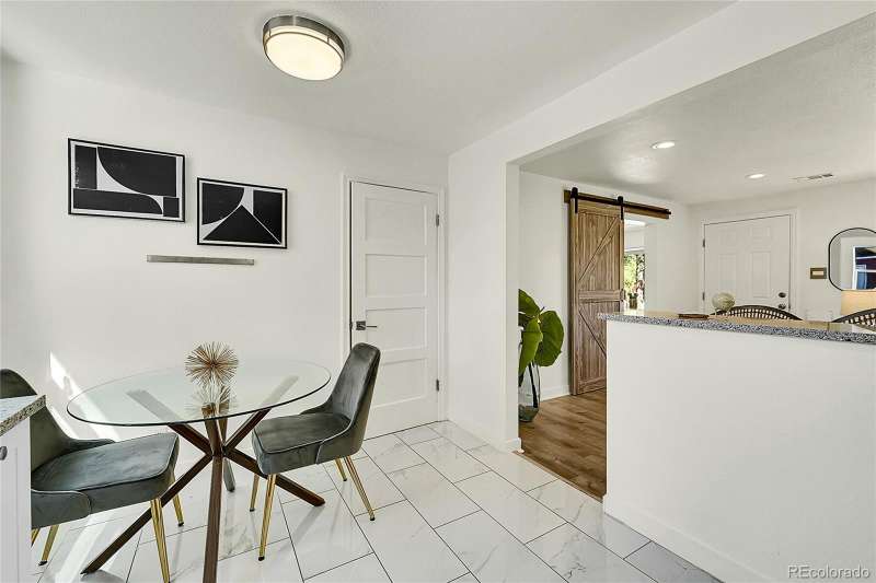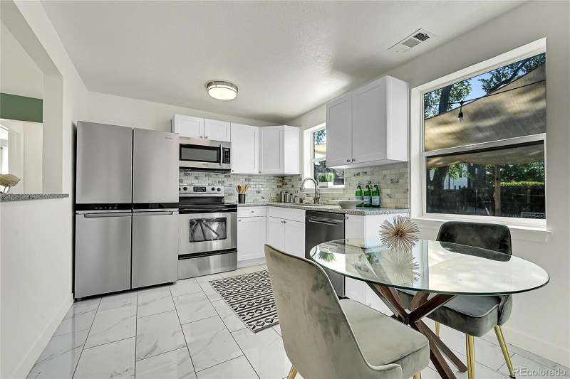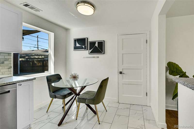 This remodeled 1940's home is not to be missed with a ton of upgrades including: Windows (2022), Roof (2023), Heat Pump / Furnace (2023), Electrical Panel (2023), Flooring (2025), brand new carpet, Water Heater (2020), and R-60 Attic Insulation. This home offers an open and spacious floor plan with an abundance of natural light and a gorgeous remodel; featuring many updates including an updated kitchen boasting of newer cabinets, stainless steel appliances, timeless subway tile backsplash, and granite countertops. A newer oversized two-car detached garage provides excellent parking and additional storage space. The outdoor space includes a newly resurfaced back patio, a large fenced backyard with mature landscaping, a front porch, and garden beds which makes a perfect oasis or ideal for entertaining. Off the living room, is the first of three bedrooms which would be perfect as a family room, workout room, office or anything that fits your needs. The laundry room & mud room with ample storage is located off the kitchen and has backyard access. Two additional bedrooms and a fully remodeled bathroom complete the interior. This home offers an incredible central location, only a few blocks from Stapleton, boutique dining and shopping in Park Hill and close to Cherry Creek, downtown Denver, DIA, and City Park.