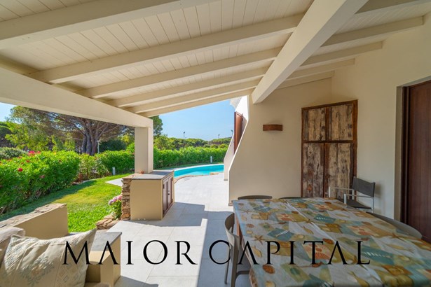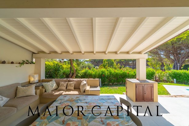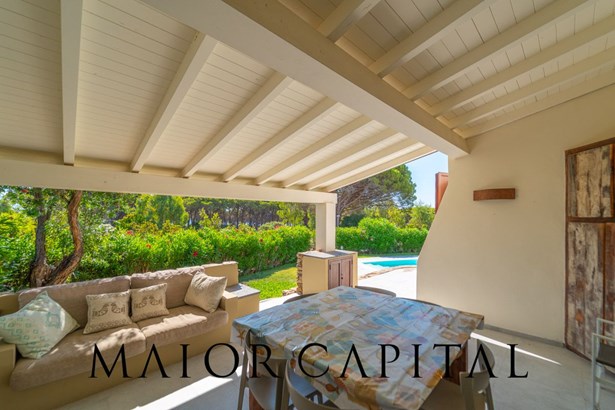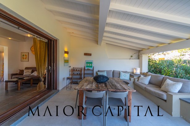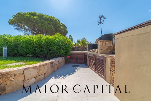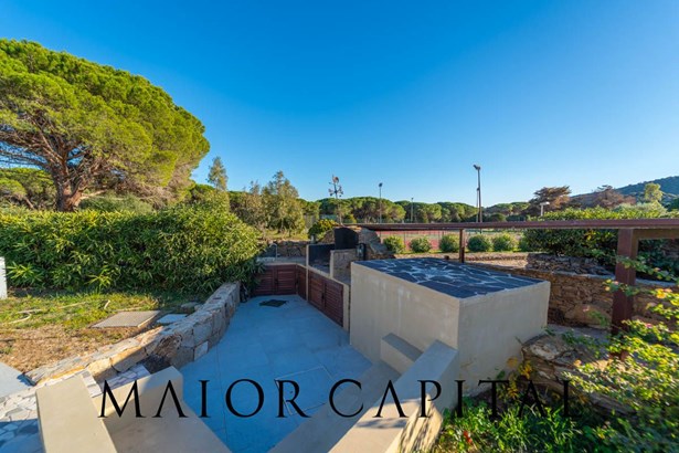The spacious and well-organised brick barbecue area becomes the heart of convivial evenings: imagine dinners under the starry Sardinian sky, surrounded by the tranquillity of unspoilt nature. This private oasis is completed by a covered parking space, which guarantees convenience and safety.