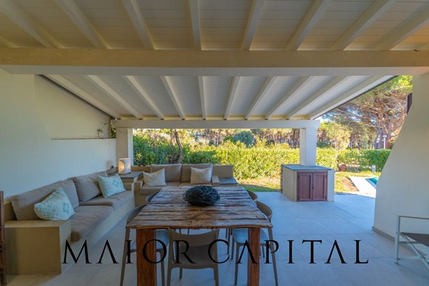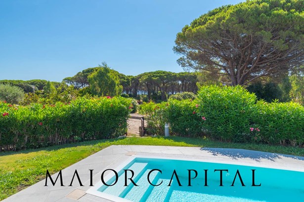 The private garden, which embraces the villa on three sides, is designed to offer comfort and functionality in every season, transforming the outdoor area into a natural extension of the house. At the centre of this exclusive space is a marvellous private salt-water swimming pool, an authentic luxury in which to relax during hot summer days. The two strategically placed outdoor showers allow you to cool off comfortably after a dip in the pool or when returning from the nearby beach.