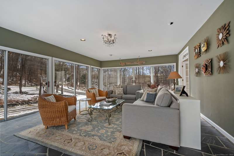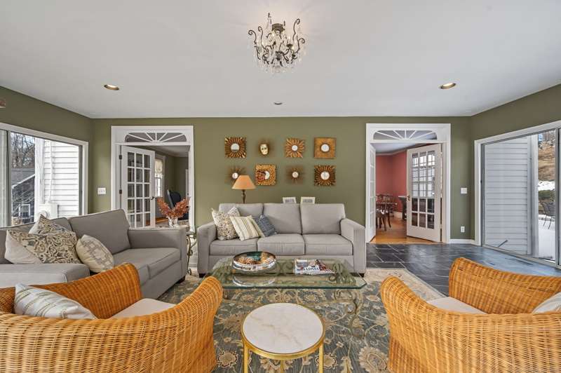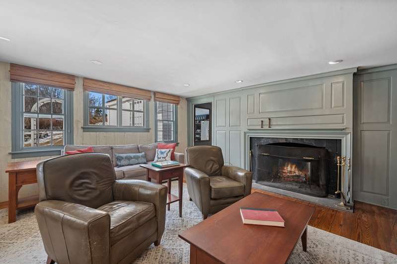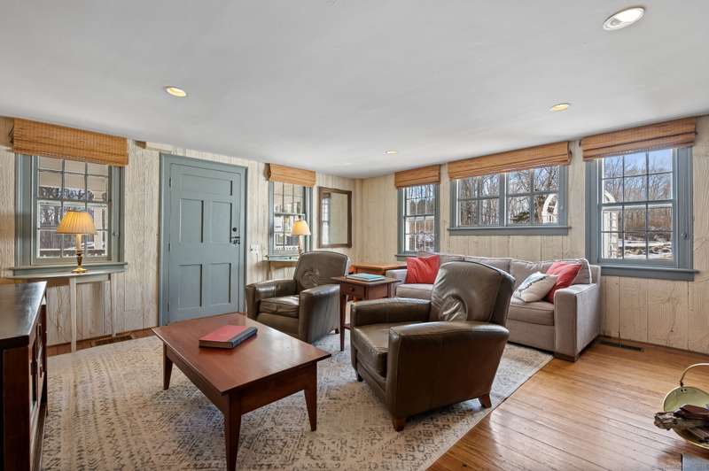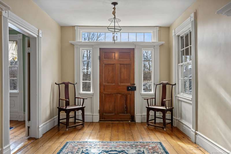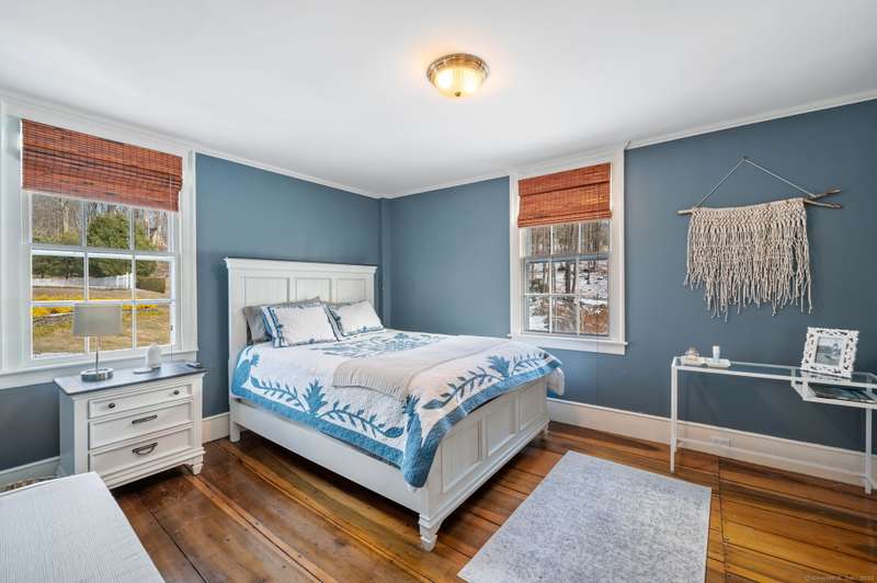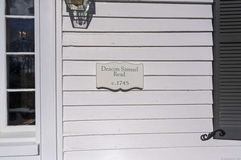 Antique lovers, prepare to fall in love! The historic Deacon Samuel Read house, a Federal style colonial, built in 1745 by the founding family of Redding, CT. Enter the stunning 11 X 24 entry hall with exquisite millwork, a gracious sweeping staircase and original wide plank oak floors that run throughout the house. 9+ foot ceilings on the first floor enhance the elegant formal living room and dining rooms, each with a wood burning fireplace to warm your guests. The spacious Sun room with stone floors looks out on the beautifully landscaped, sloping property. A "new" addition built in 1857 includes a cozy family room with a 3rd wood burning fireplace and access to a charming porch where you will sit in the warm weather and enjoy the designated scenic road in front of the homestead. An office/bedroom sits between the family room and the large country kitchen. The dining area in the kitchen opens to a stone patio that leads to the heated in-ground pool. There is a powder room area with a