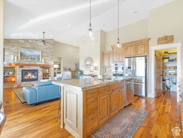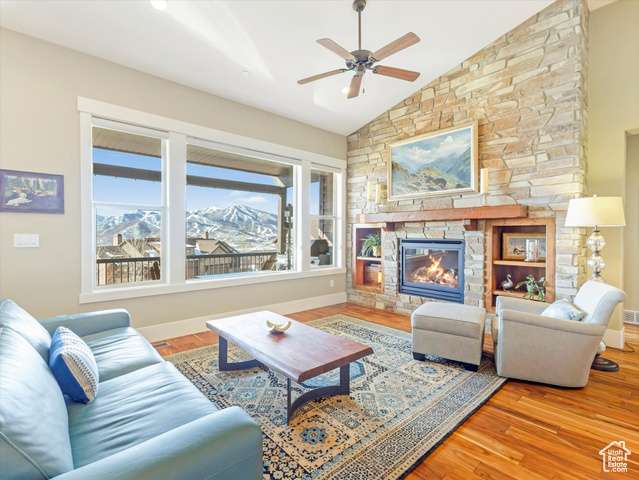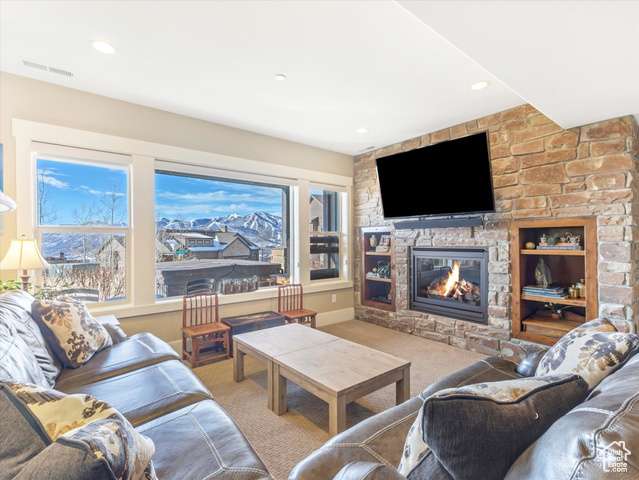 Enjoy panoramic views of Deer Valley, Jordanelle and Timpanogos from a bright, sunny living area. Wood floors, gas fireplace, vaulted ceilings. A covered deck on the main level allows you to appreciate your beautiful view. The main level primary suite also has marvelous views, a spacious primary bath with a large soaking tub, double vanity walk in closet and a customized laundry chute. The lower level walk out basement features an oversized living area with room for all your family and friends, a wet bar, fireplace & even a game or pool table, two additional bedrooms and full bath perfect for family & guests, a downstairs patio for more outdoor living. Seller is offering a carpet allowance. Rustler is conveniently located close to area trails, Deer Valley East Village, Park City skiing, dining, and shopping and 45 minutes to Salt Lake International Airport. Easy to show, call for a private tour!