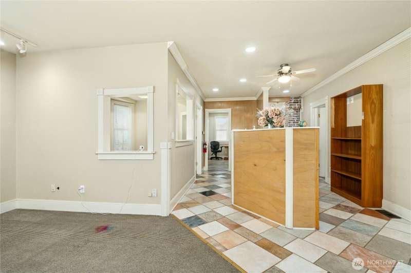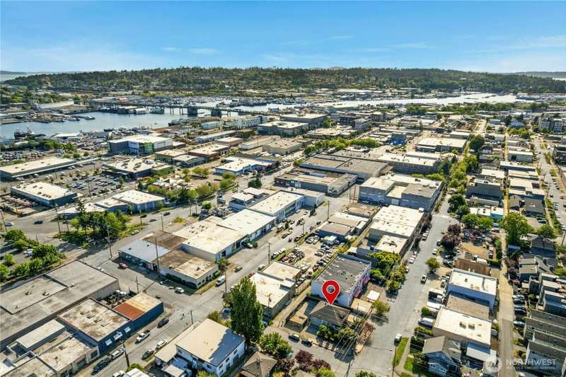 Long time owner/user-local plumbing contractor-converted this well-built, single-family home to office and warehouse space. Multiple office and work spaces on main floor including a reception/seating area, kitchenette and powder room. Served by a wide stairwell, the basement offers high ceilings, dry, warm storage, excellent well-lit space with a 3/4 bath and separate entrance. The high fenced screened yard features both street and alley access, expansive concrete and gravel areas, a wide vehicle ramp to the basement warehouse access along with potential for multiple secure off street vehicle parking. Note the two space off street parking pad. Upside potential with current zoning of UI U/45. Be sure to view the virtual tour 3D Floor plan.