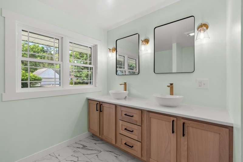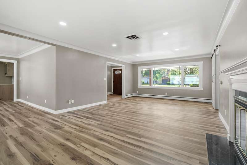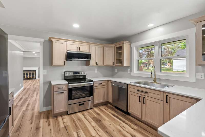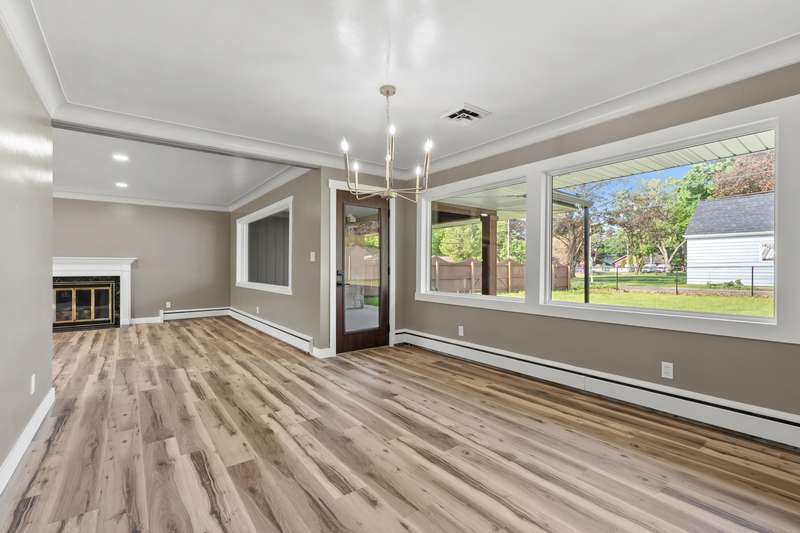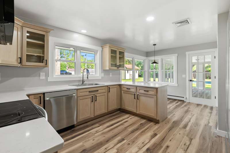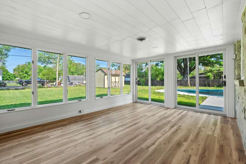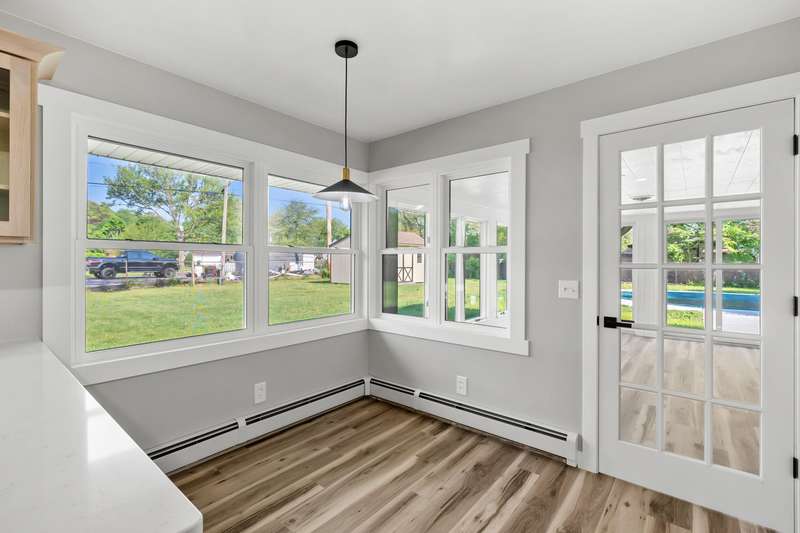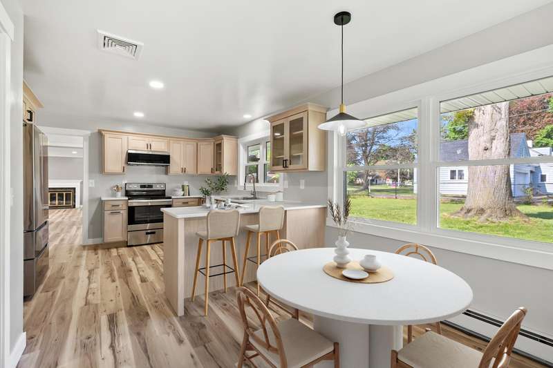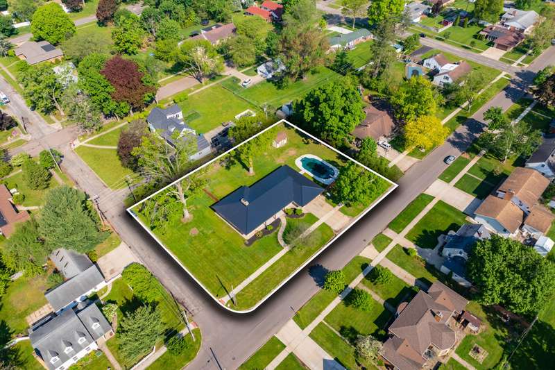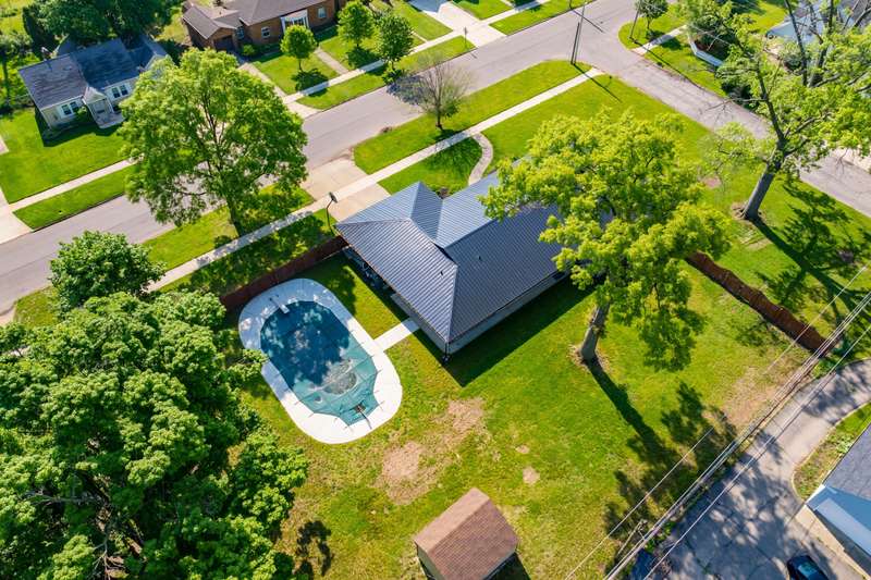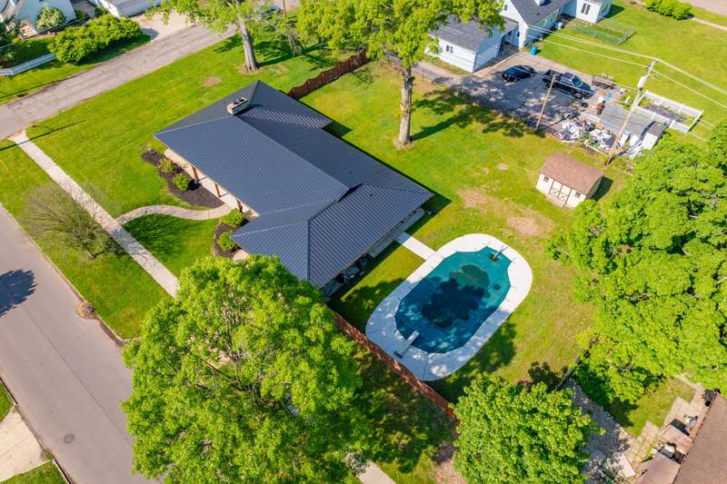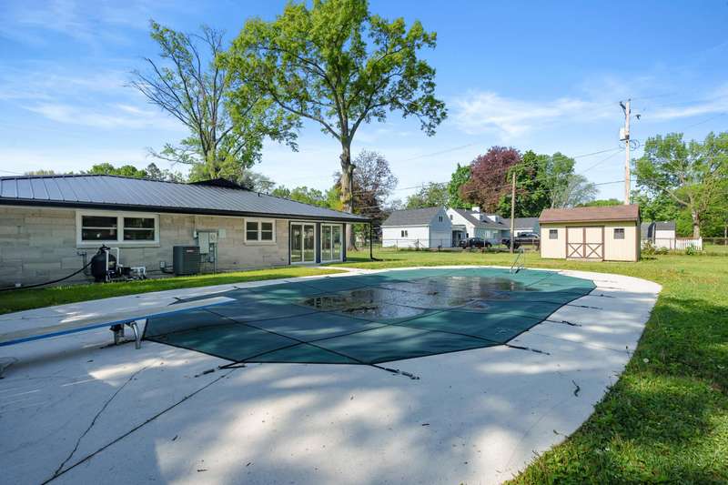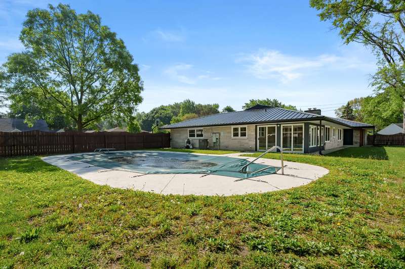 Exceptionally rebuilt and thoughtfully redesigned, this ranch sits on a half-acre lot with over 2,400 sq. ft. of finished main-level living and an additional 800 sq. ft. of unfinished potential below. Fully renovated in 2024/2025 with updates inside and out (see attached list). New metal roof, windows, plumbing, electrical, and a complete interior gut renovation make this home feel like new construction, while preserving the solid bones and character you won't find in post-2000 builds. The gourmet kitchen features custom Amish white oak cabinetry, quartz countertops, and warrantied stainless-steel appliances, opening into a breakfast nook and a heated four-season room overlooking the pool. The open floor plan is enhanced with new flooring, crown molding, a formal dining room, and a spacious living room with a gas fireplace. With timeless finishes, meticulous upgrades, and zero deferred maintenance, this home is truly turnkey and move-in ready. TR Schools.