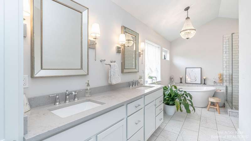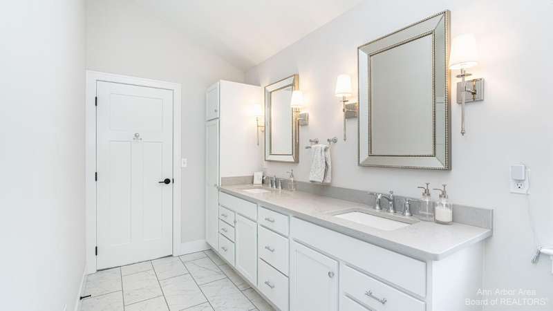 Wexford Homes is thrilled to present it's newest community--The Gallery of Scio! The incredible DEVONSHIRE model is a true show stopper on a premium, walkout homesite. This 4 bed/5 bath luxury detached condo boasts over 3900 sq.ft. of incredible bright and open finished living space, an entertainer's kitchen w/ large island overlooking the great room with gas fireplace, 1st floor primary bedroom suite w/large walk-in closet, private bath w/dual sinks, commode, and 6x3 fully tiled shower, 2 additional bedrooms on the main floor (each with a private bath), and a first floor study. The partially finished lower level showcases a wine cellar, craft/yoga room, recreation/gaming room w/fireplace and wet bar, and walk out to a stunning sunken garden patio with a blue stone patio and multi-tier sto stone wall with plantings! Our community showcases sidewalks, walking trails, a private dog park, and The Gallery Pavilion--great for gathering with your new neighbors and incl. a gas fireplace, patio (par. covered), and flower boxes. Full exterior maintenance including snow removal and lawn care--this community is truly one of a kind and is minutes from Downtown Ann Arbor w/low twp. taxes. PHOTOS ARE EXAMPLES OF HOMES RECENTLY BUILT BY WEXFORD, Primary Bath, Rec Room: Space