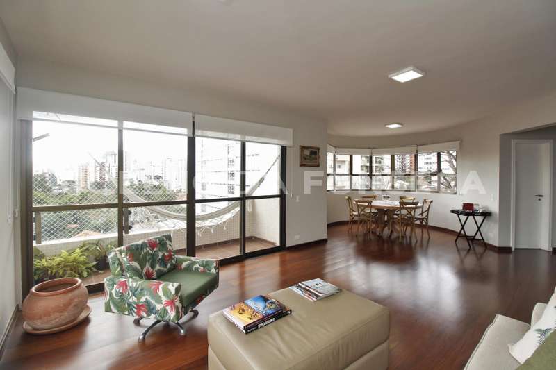 Esse apartamento se destaca pela integração dos ambientes sociais e também com espaçosos dormitórios com armários embutidos de ótima qualidade. O living é possível criar três confortáveis ambientes e agregado a uma varanda maravilhosa com uma vista para a copa das arvores. As garagens são livres e de fácil entrada e saída do condomínio. A localização é de acesso muito prático as principais vias e avenidas e próximo do Parque Ibirapuera.