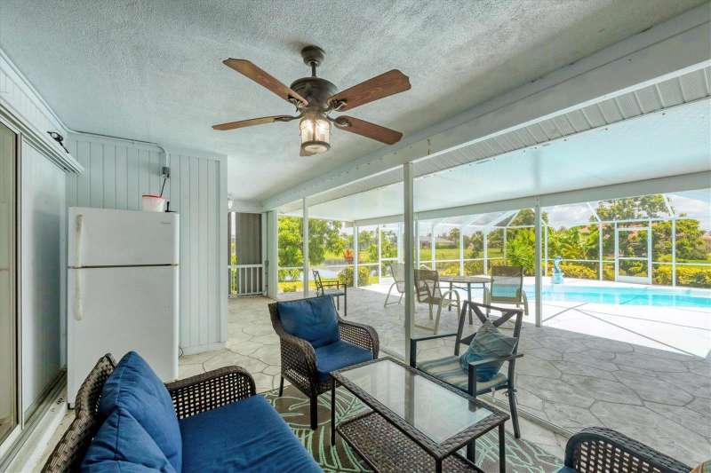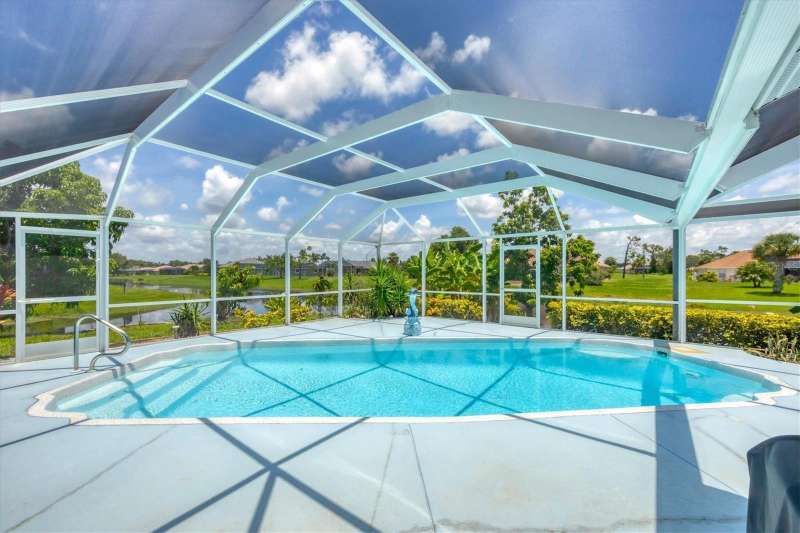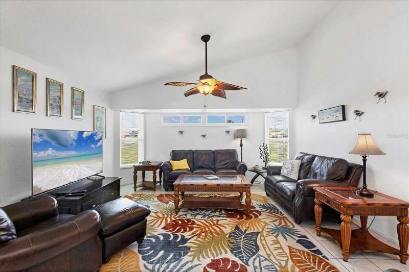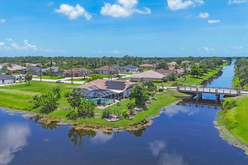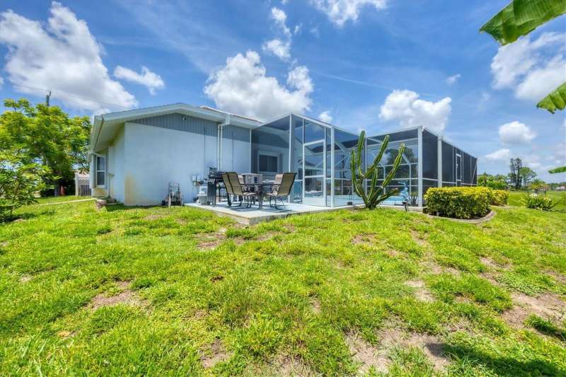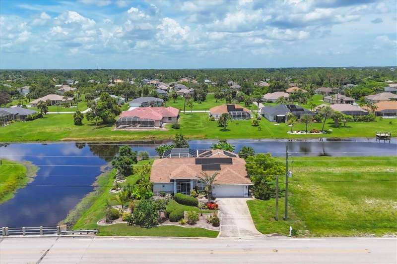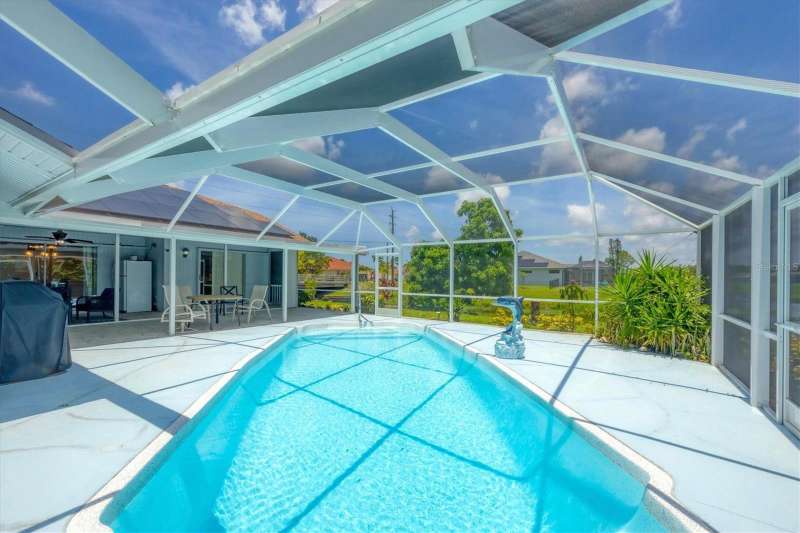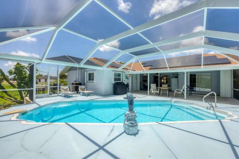 Turnkey Furnished Solar Pool Home Near Beaches & Golf! Welcome to your fully furnished Florida retreat — a beautifully maintained 3-bedroom, 2-bath, 2-car garage home with dual canal views, ideally located just minutes from world-famous Gulf beaches, 5 championship golf courses, and a vibrant community center filled with year-round events and activities. This turnkey furnished home is move-in or rental ready, offering fantastic income potential for seasonal or long-term stays. A 2023 solar power system keeps your electric bills around $27/month, making this an incredibly cost-efficient property to own and operate. Newer Roof 2022, A/C in 2021 and easy to use accordion shutters give piece of mind. Enjoy the saltwater pool, resurfaced with a newer heater (2019), and entertain with ease on the oversized screened lanai—perfect for barbecues, sunbathing, or simply relaxing in the Florida sunshine. Inside, the split floor plan and cathedral ceilings create an open, airy layout ideal for hosting and guest privacy. The updated kitchen with granite countertops pairs beautifully with fruit from your own mature mango, banana, avocado, and citrus trees. The private primary suite offers a spa-like bath with a garden tub, walk-in shower, dual vanities, and vaulted ceilings. The guest wing includes a bath with direct pool access, adding convenience for visitors or renters alike. Additional features: • Re-piped with PEX in 2008 • Whole-house surge protector • TREX flooring in garage • High-demand location for vacation or seasonal rental This home truly has it all — low-maintenance living, strong rental potential, and a location that delivers the best of the Florida lifestyle. Don’t miss the 3D virtual tour and floor plan— schedule your private showing today!