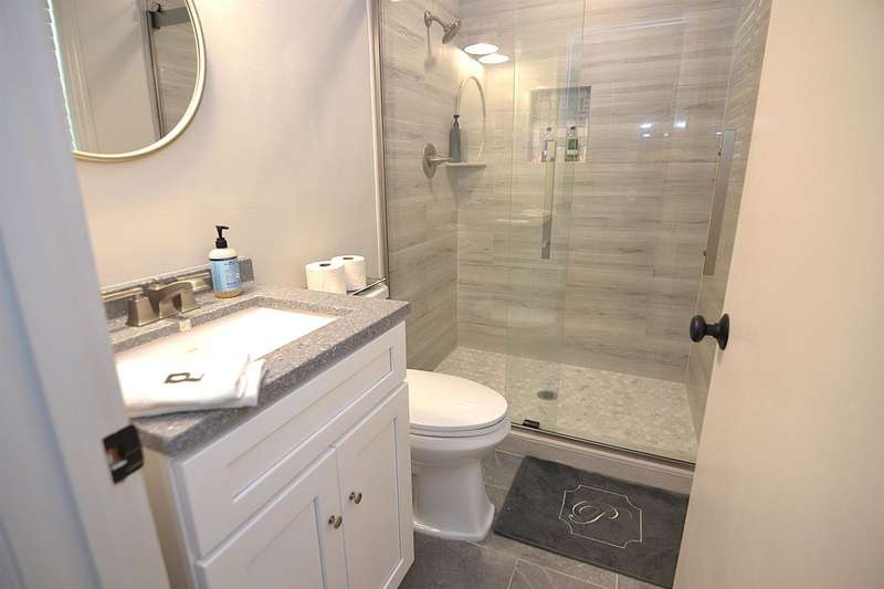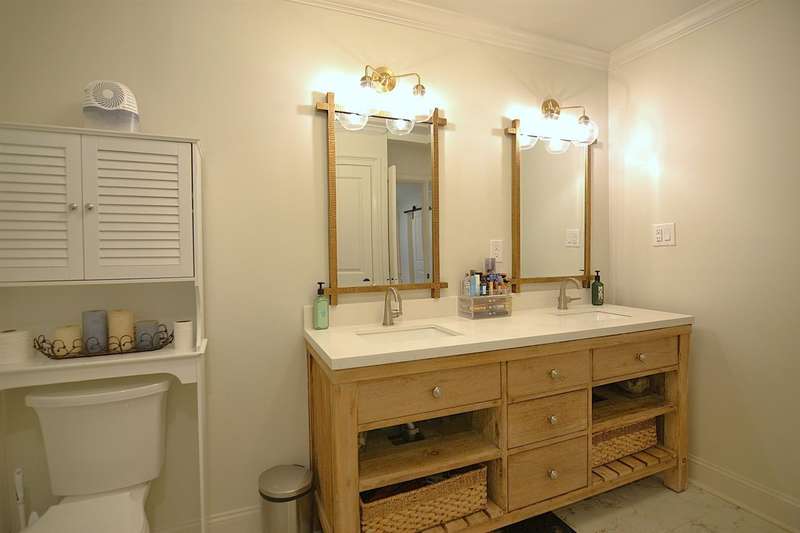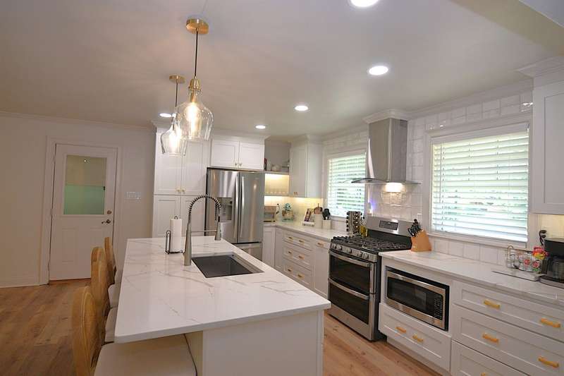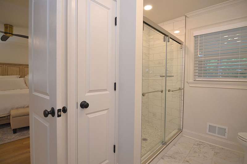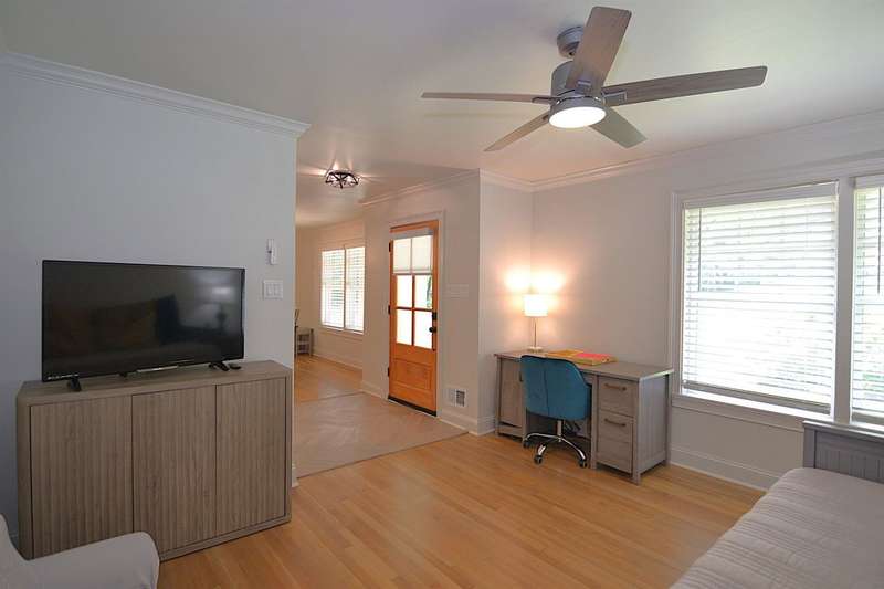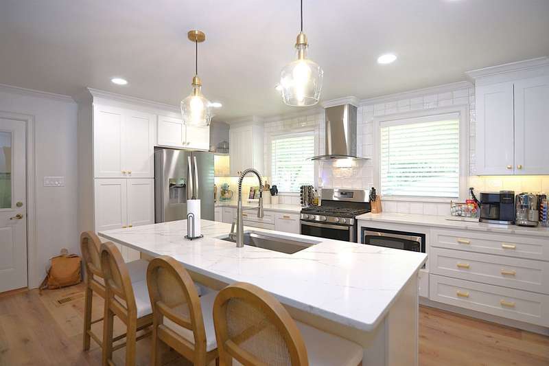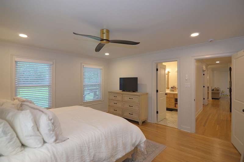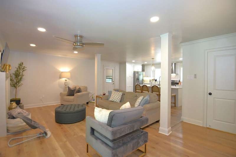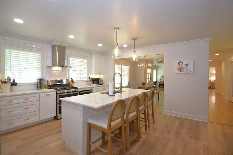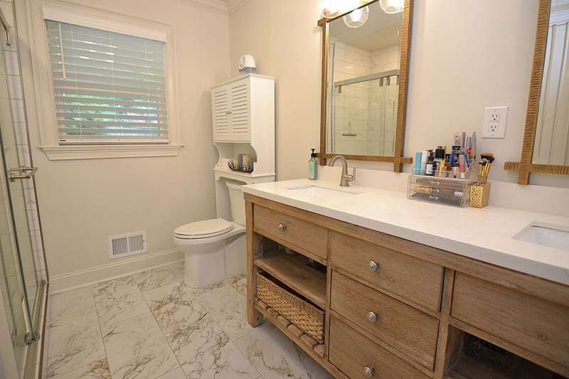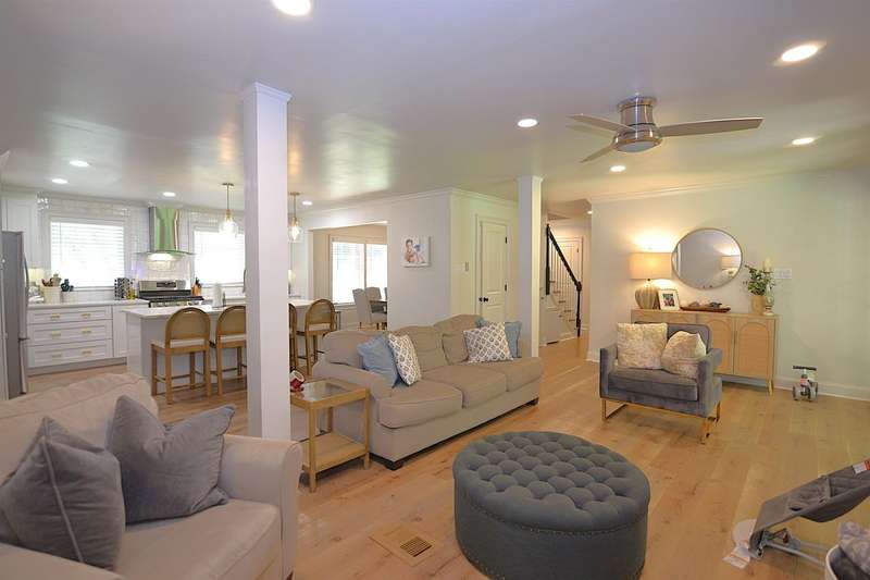This home was totally renovated about 2 years ago and is in a very prestigious location! The primary bedroom is downstairs, and the 2 upstairs bedrooms each have their own private bath. The office/nursery downstairs is the 4th bedroom. The kitchen has a gas range and an island/breakfast bar with a quartz countertop. The kitchen and family room are open, light and spacious which makes this space ideal for gatherings or entertaining. The covered deck overlooking the park-like backyard is a perfect place for relaxing or more casual entertaining. Upscale fixtures and finishes throughout. The Sellers love this home but are having to move because of a new job out of state.