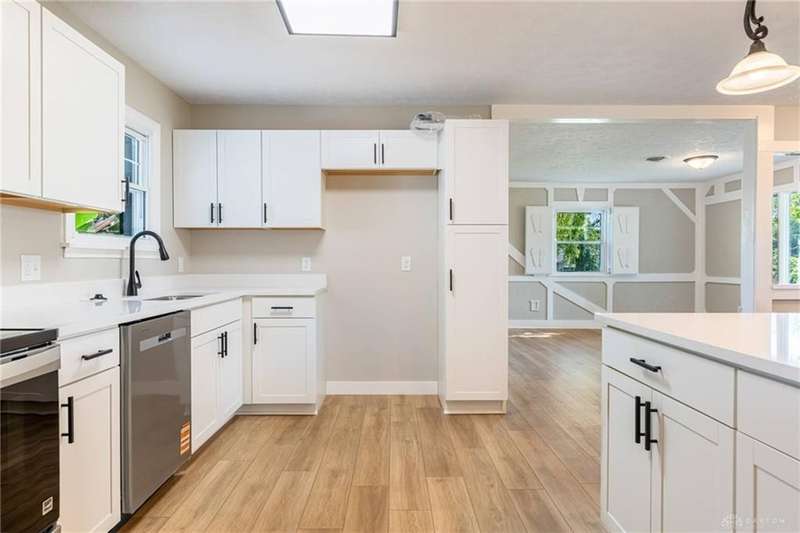 Totally renovated home at Shawnee Lake in Jamestown, absolutely nothing left to do but move in. This ranch home has 3 bedrooms, 2 full baths, and almost 1,600 square feet of living space with a 2 car attached garage on almost a .40 acre corner lot. Recent updates include exterior paint, new roof (complete tear off), new chimney cap, new HVAC with transferrable warranty, new sump pump, new kitchen with custom cabinets and island with stainless steel appliances, quartz tops, new LVP flooring and new carpet, updated baths, new plumbing, new electric outlets and switches, new light fixtures, new hot water tank, new interior and exterior doors and hardware, new patio door, all new attic insulation, new crawl space vapor barrier, etc. Sit on your front porch or back deck and relax while getting a view of the lake. Minutes from Jasper golf club. Land contract, Lease purchase options available.