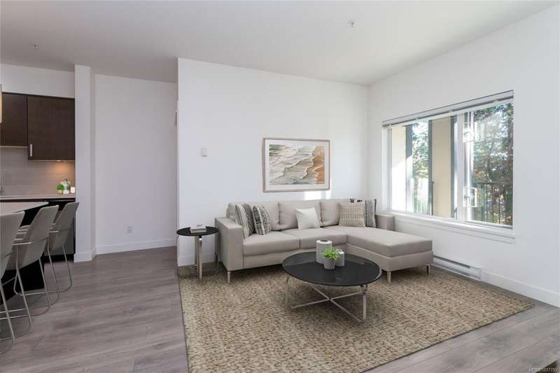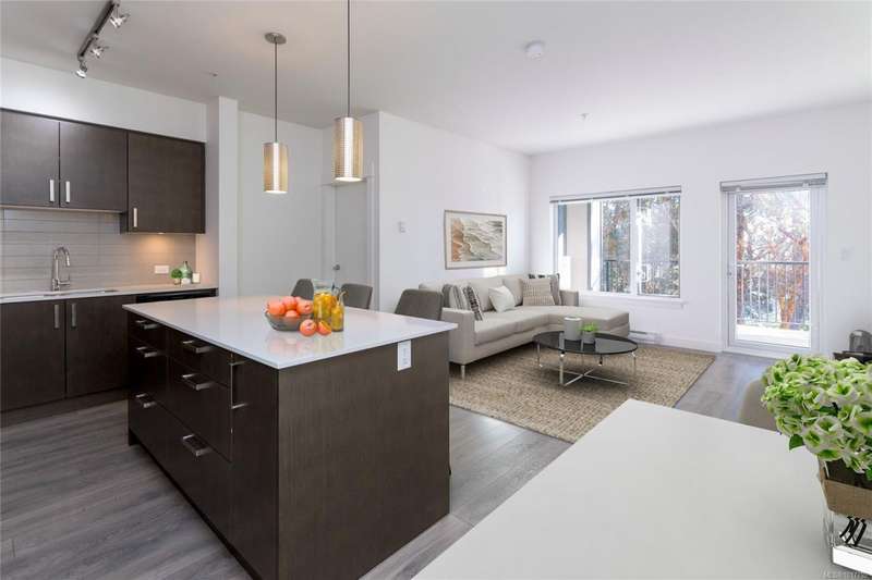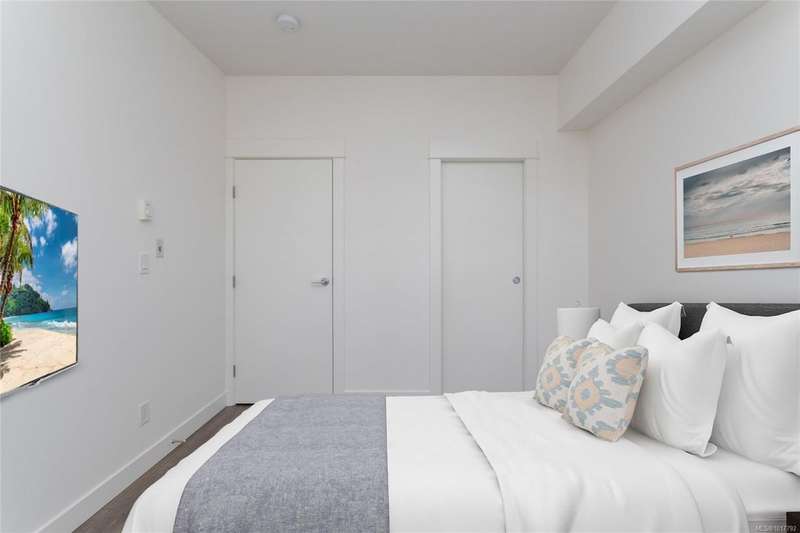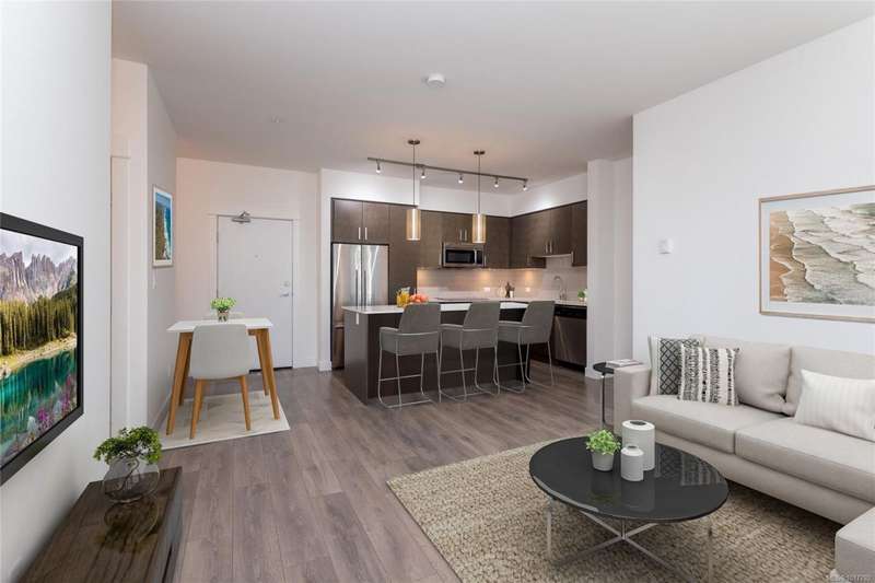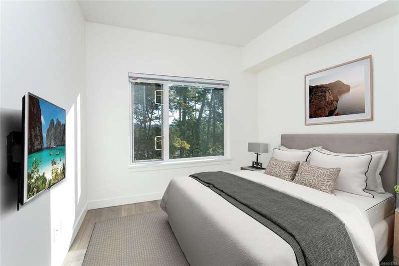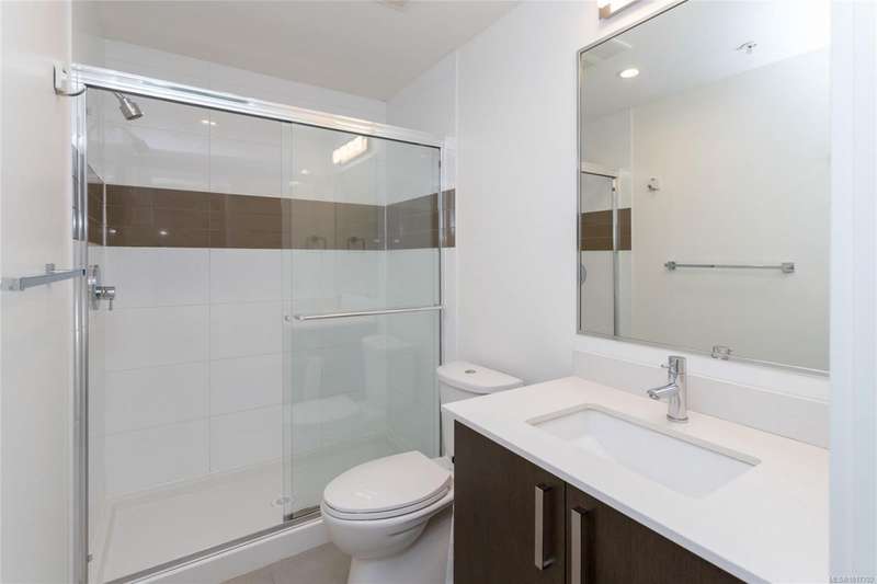Welcome to The Coho and all that elevated living has to offer. This 2bd/2bth home is located at the back of the building, quiet & surrounded by greenery & trees. Enjoy sun-filled mornings & stay cooler on hotter days while relaxing on your large balcony. You will love the private layout with bedrooms & baths on opposite ends and an open living area between. The 9'ceilings plus glass window & door amplify the sense of space. The generous master bedroom has a walk through closet that opens to a modern glass & tile ensuite. The 2nd bedroom matched in size also has access to a 4 pc bath. The contemporary kitchen includes double sink, quartz counters, tile backsplash, a new Fisher & Paykel fridge, wood cabinets and large seated island. Off the kitchen you will find a desk area & laundry with new washer & dryer. This unit is in prime condition - professionally cleaned and freshly painted throughout. 1 secure underground prkg & storage. Close to all amenities. Book your viewing today!