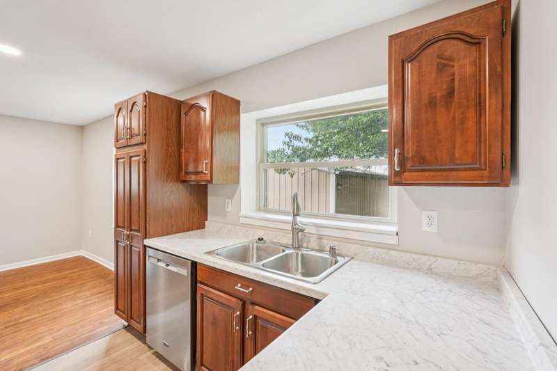 100 percent financing available through USDA/Rural Housing! This completely remodeled home rests on a spacious 0.66-acre lot & features an oversized 3-car garageideal for hobbies or running a business. Inside, you'll find gleaming hardwood floors, a wood-burning fireplace, crown molding, curved archways, recessed lighting, fresh paint, neutral decor, new ceiling fans, & an updated bathroom with a custom tiled job. The kitchen boasts stainless steel appliances & front-load washer & dryer are included. Enjoy ample natural light throughout, a ready-to-finish basement for additional space, & a brand new deck overlooking an enormous fenced-in yard with mature landscaping. Relax on the charming covered front porch or take a short stroll to Cherokee Plaza, offering convenient access to banking, grocery stores, & restaurants. A rare blend of charm, function, & prime location!