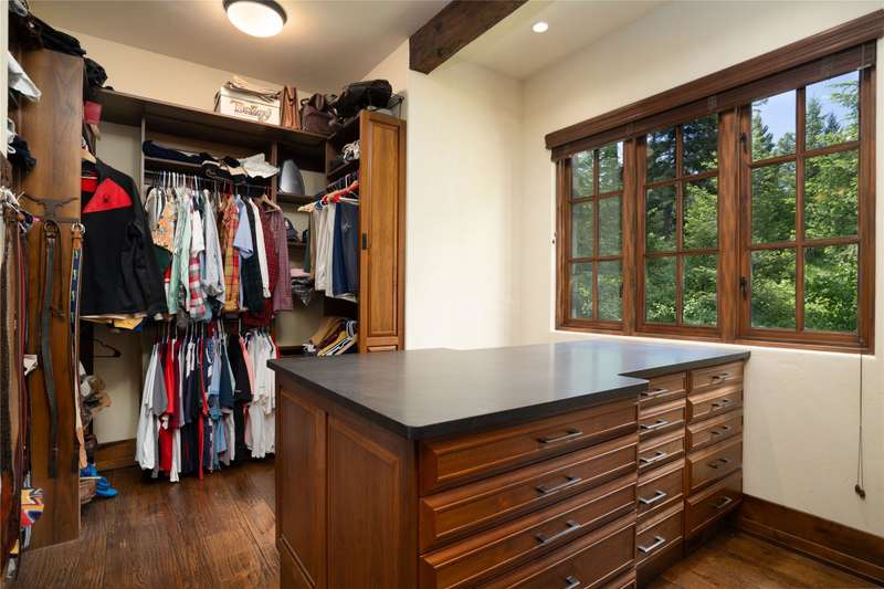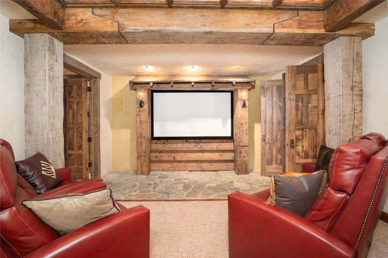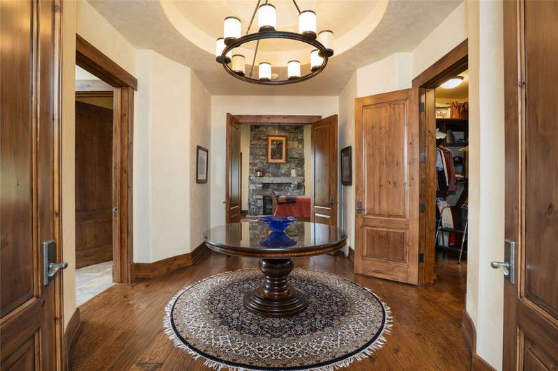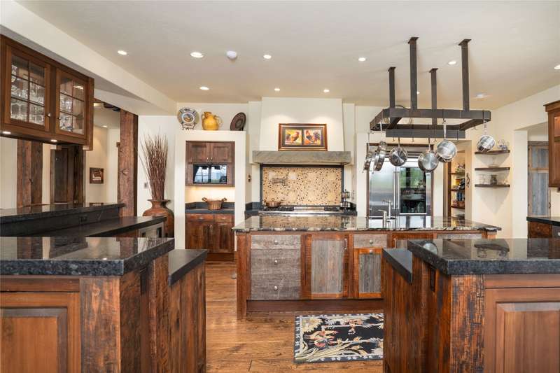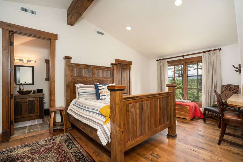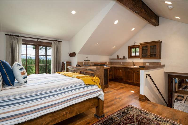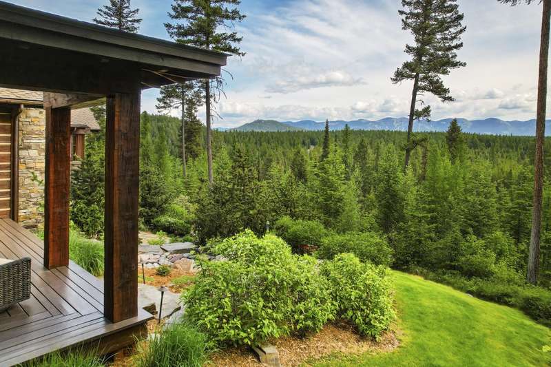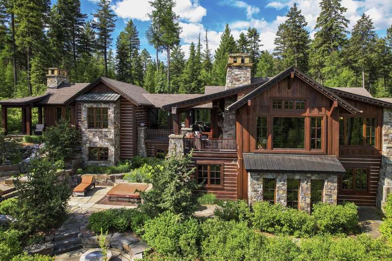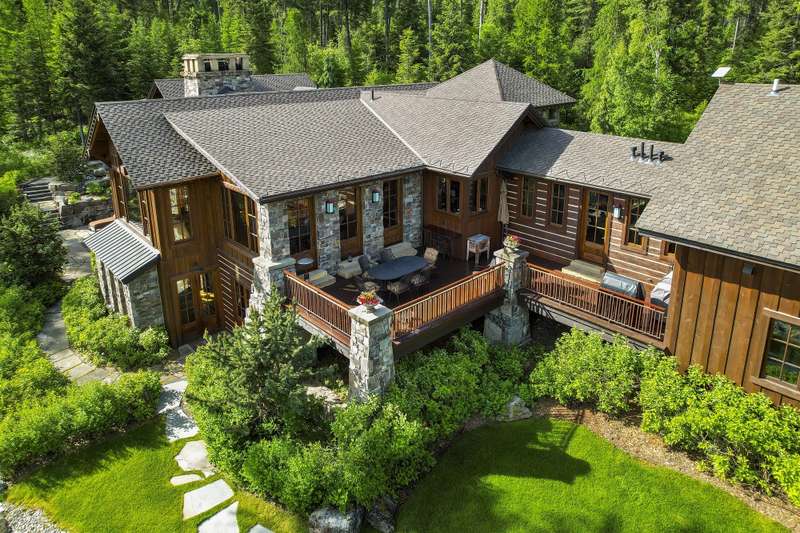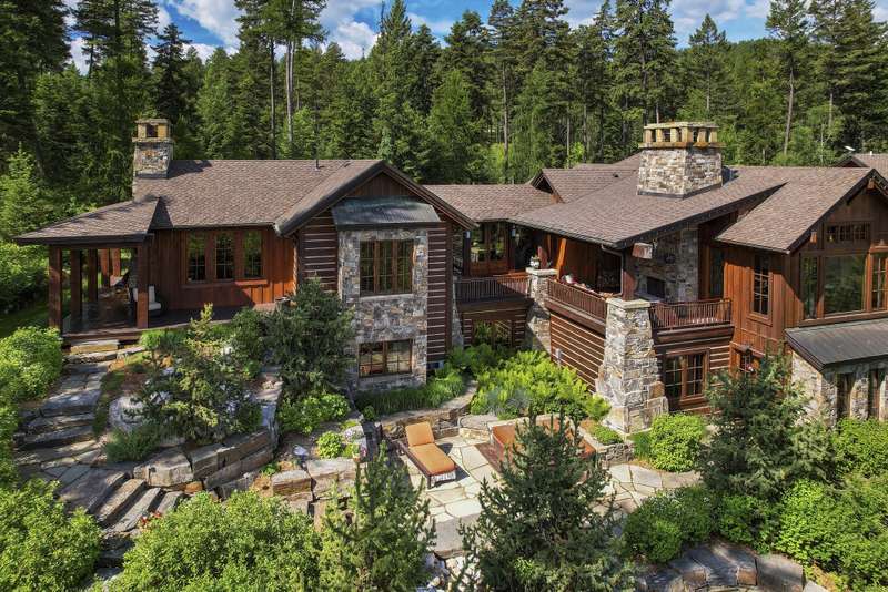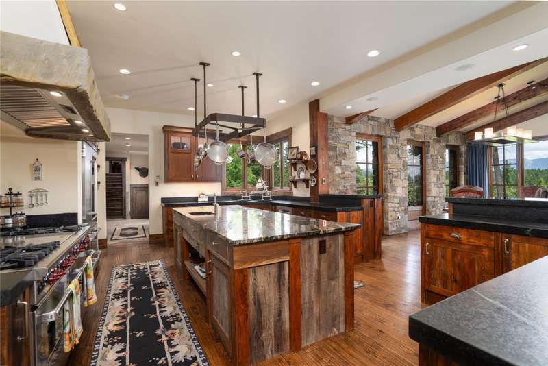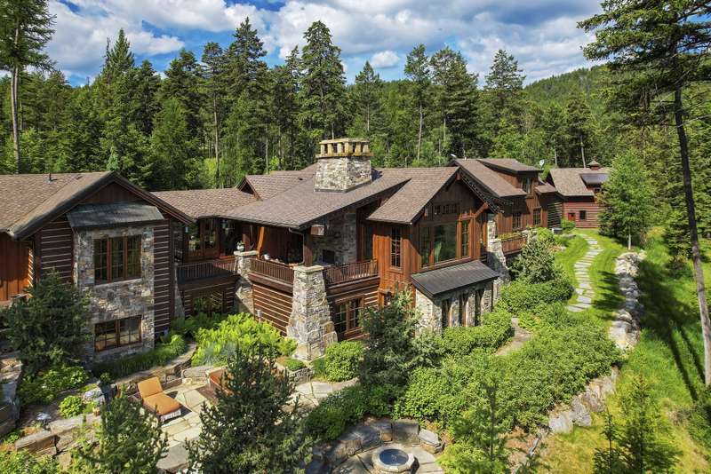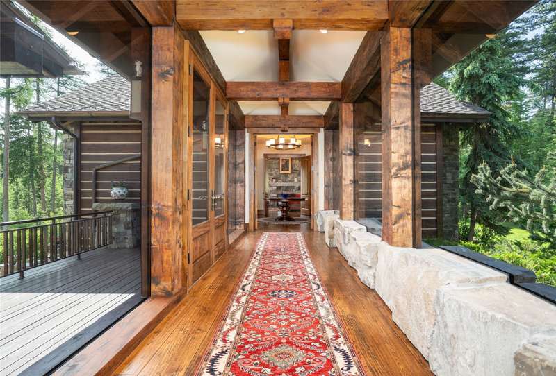 Located within the gated privacy of Whitefish Hills, 1263 Spencer Ridge Road takes full advantage of one of the best 20 acre lots in the development with views of the Whitefish & Swan Mountain Ranges and stunning views into Glacier National Park and Mt. Jackson. These views are celebrated from virtually every room in this timeless Montana residence of stone, timber and wood handcrafted around a thoughtful and efficient home design to a level of detail rarely experienced. This meticulously maintained residence is blended into the hillside and lives seamlessly with the outdoors from various decks and stone patios surrounded by mature landscaping, terraced elevation changes and a water feature whispering falling water to the private primary bedroom wing. A series of connected trails makes it easy to venture farther from the home to enjoy the remaining 20 acres of thinned and professionally maintained forest and the serene shore of a shared lily pond below the home. Upon entry from stone steps set under massive timber trusses the home welcomes you with a feeling of warmth and comfort exuded from colors, textures and materials blended in a style of refined Montana rustic. Plaster walls, stained alder trim and doors, sturdy bronze hardware, wood burning stone fireplaces and distressed hardwood floors set the tone while being complimented by top-of-the-line plumbing and light fixtures, appliances, cabinetry and stone countertops. The additional comforts of radiant heat flooring, central air conditioning, Russound sound system and Lutron controlled lighting system round out the amenities of a truly custom home experience. From the main entry foyer the home flows into a comfortable open concert of great room, dining area, kitchen and sit up bar all accessing outdoor decks. An incredibly private main floor primary bedroom wing is connected by an impressive glass and stone gallery while the open stairwell makes the transition to the lower level with three additional ensuite bedrooms, family and game room, bar, gym, office, theatre and wine room. Connecting easily from the kitchen, the stone floor mudroom makes the transition to the large three car garage and a full guest apartment above while the detached shop located a few steps from the main home adds additional car and toy storage and guest quarters above. Property contains a private 11,000 gallon water fire mitigation cistern. Complimented by the amenities of Whitefish Hills and shared access to Blanchard Lake this home and location are priced at a true value.