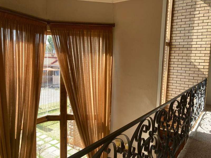 ARCHITECTURAL MASTERPIECE Step into STYLE!!! Modern double story home You will find this masterpiece, in an upmarket and quiet suburb in Kimberley. This home express the perfect balance between COMFORT & STYLE. BONUS = The property is currently registered as a guesthouse, and close to shopping malls, University and local schools. This Property offers 7 bedrooms all with in-suite bathrooms. All bedrooms and bathrooms are spacious and elegantly designed. A modern kitchen with lots of cupboard space, granite tops, breakfast nook, pantry, scullery and laundry area. 2 x Spacious Lounge (Formal and informal), 2 x Dining rooms (Formal and informal), TV Room with a fire place. Beautiful pool with water features and the entertainment rooms leading out onto the pool area. The landscaped garden with irrigation system features Jacuzzi, indoor braai area, entertainment area, double garage and a carport to accommodate six vehicles. Additional features include ceiling fans, air conditioning, a cellar, borehole and JOJO Tank This Property is fenced and secured with alarm Phone for an appointment