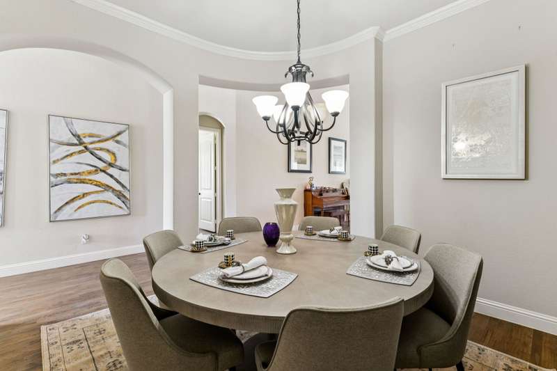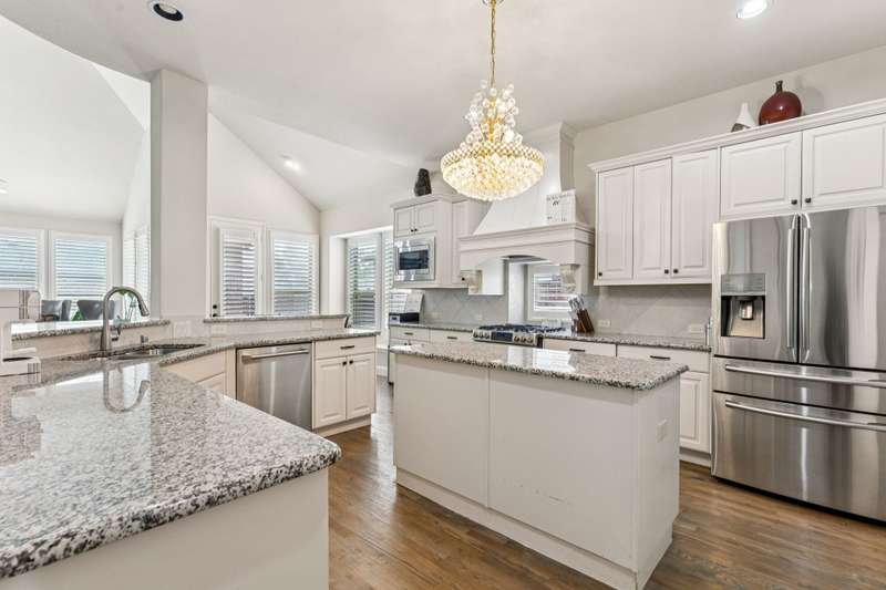 Welcome to Your Dream Home on a corner lot in Phillips Creek Ranch. Nestled in the heart of the highly sought-after Phillips Creek Ranch, this stunning home offers the perfect blend of luxury, comfort, and functionality. From the moment you step inside, youll be captivated by the soaring vaulted ceilings, rich hardwood floors, and thoughtfully designed spaces. The main floor features a private study ideal for working from home, a guest bedroom with full bath, a formal dining room, and a spacious living area centered around a striking stone fireplace with gas logs. Expansive windows fill the space with natural light and provide a serene view of your private backyard. The primary suite is a true sanctuary with gorgeous backyard views and a spa-inspired en-suite bath featuring dual vanities, a garden tub, separate shower, and generous walk-in closet.The chefs kitchen is a culinary dream, boasting granite countertops, a gas range, abundant cabinetry ready for all your cooking and entertaining needs. Upstairs, youll find two additional bedrooms with a shared bath, a spacious game room, and a dedicated media room offering plenty of room for relaxation and fun.Living in Phillips Creek Ranch means more than just a beautiful home. Enjoy access to premier amenities including a clubhouse, community pools, scenic greenbelts, fishing lakes, and year-round neighborhood events. All this, just minutes from top-rated schools, shopping, dining, and entertainment.Dont miss your opportunity to call this exceptional property home.