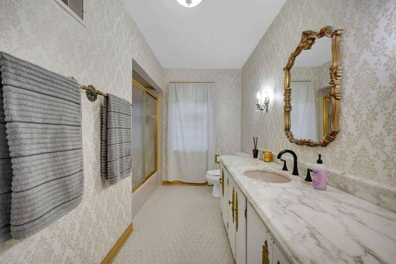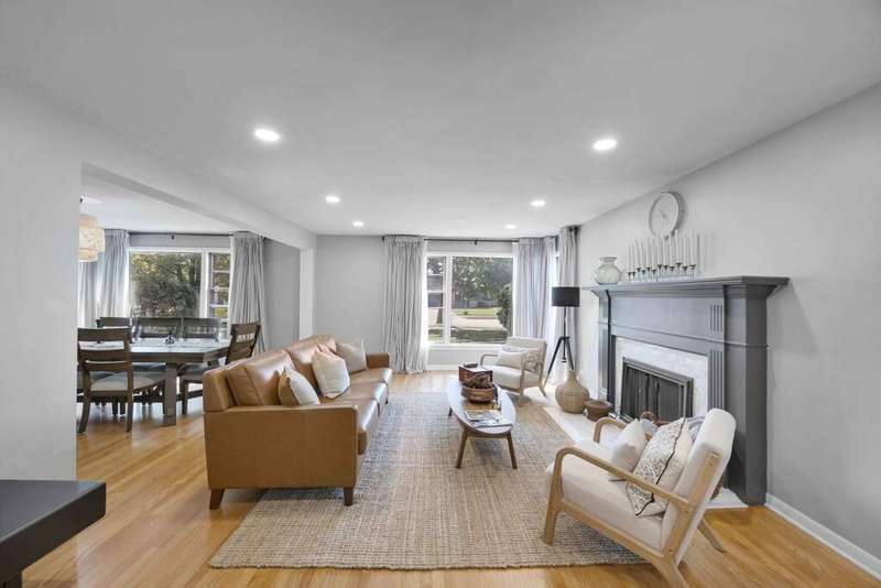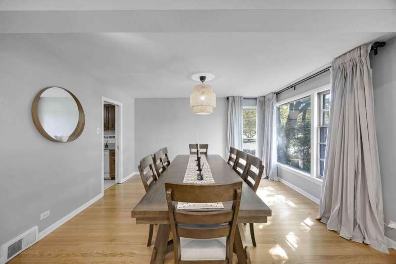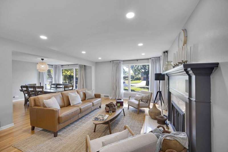 Charming 3-Bedroom Ranch with Finished Basement! Welcome to this beautifully maintained ranch-style home featuring 3 spacious bedrooms and 2.5 bathrooms, nestled in a desirable neighborhood. From the moment you step inside, you'll appreciate the warmth of hardwood floors that flow throughout the main level, enhancing the home's timeless charm. The living room is anchored by a cozy fireplace, creating a perfect gathering spot for family and friends. Adjacent to the main living area is a bright and airy Dining Room. The kitchen offers plenty of cabinet space and has large windows that look out into the 3 season room! The heart of the home extends downstairs to a fully finished basement, boasting a wet bar, a second fireplace, and a large flex room-perfect as a home office, gym, or guest suite. Step outside to enjoy the spacious backyard, complete with a large deck, perfect for entertaining, grilling, or simply enjoying peaceful evenings outdoors. This home combines classic comfort with modern amenities, offering ample space for both everyday living and entertaining. Recent updates- refinished hardware floors (2023) new recessed lighting in the Living Room, New Refrigerator, New flooring in the Sun Room, tuckpointing, French drywell (2025) Water Heater (2025) 2 new toilets (2025) A/C (2023)