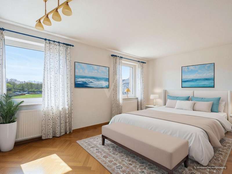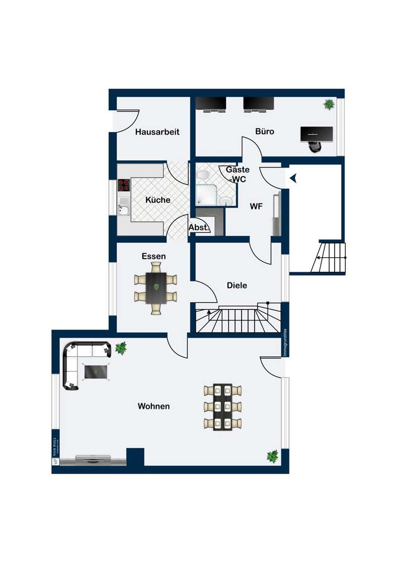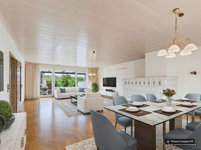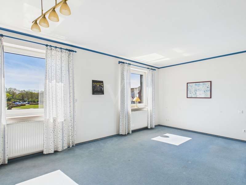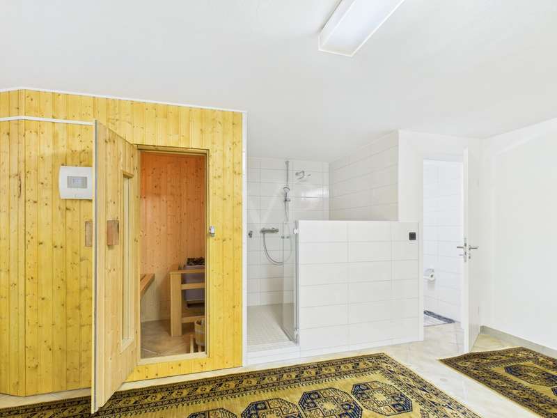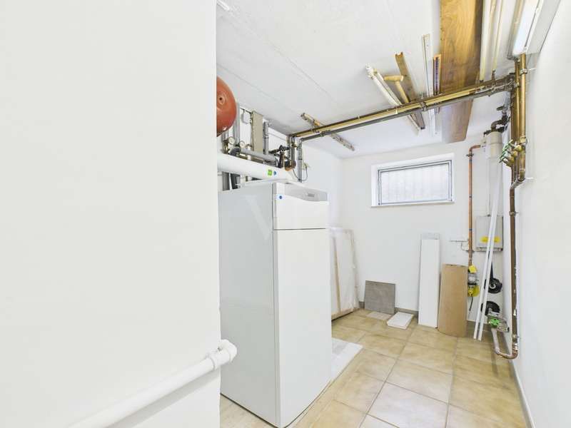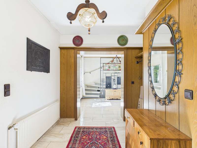 For sale is a "chain house" completed in 1985 on a plot of approx. 500 m² with upscale furnishings, staggered storeys and a basement with underground parking. The individually designed building is approx. 16 meters wide on the first floor and approx. 10 meters wide on the upper floor. The total living space is approx. 180 m², so this property in no way corresponds to the "classic" chain/row house! The first floor is entered via the large vestibule with access to the guest WC and the office/guest room. The spacious hallway (with stairs to the upper floor and the basement) then leads to the approx. 53 m² living room, the dining room and the kitchen with adjoining utility room. In front of the living room is an approx. 20 m² terrace with a glass roof. On the upper floor there is the master bedroom with en-suite bathroom and dressing room, 2 further rooms, a hallway with storage room and a bathroom with shower and access to a roof terrace. In the basement with approx. 80 m² of usable space, there is the stairwell with access to the underground garage, 3 cellar rooms (one of which has a sauna and shower) and the boiler room with the gas heating system, which was replaced in 2020. There is a small green area at the rear of the property, where there is also a small tool shed. All in all, a very spacious property with lots of design options, let the pictures inspire you and arrange a viewing appointment!