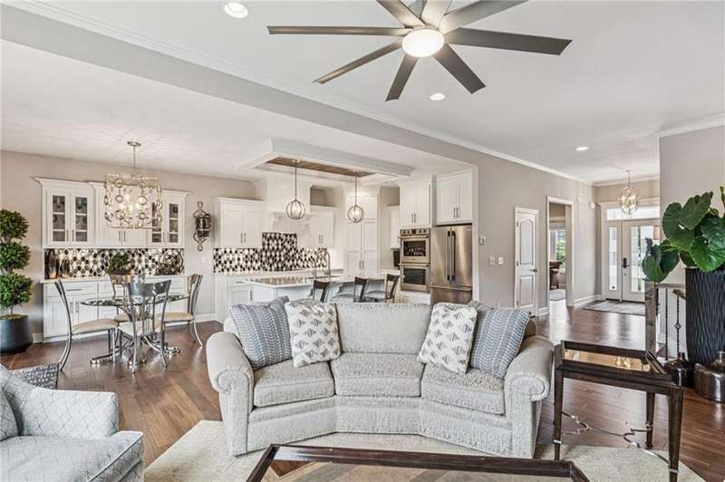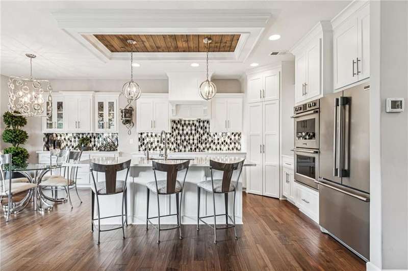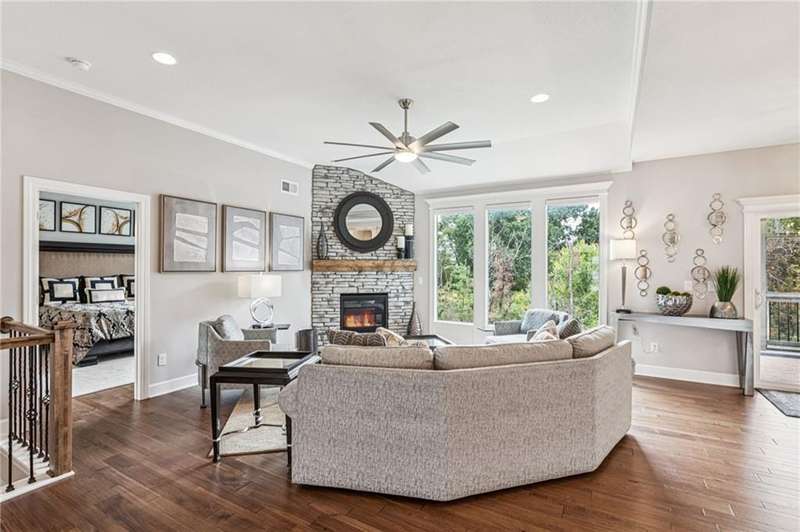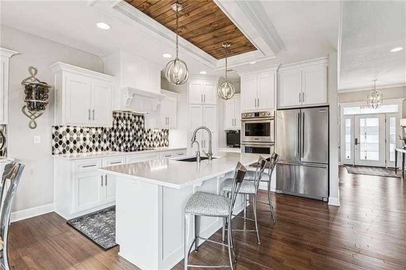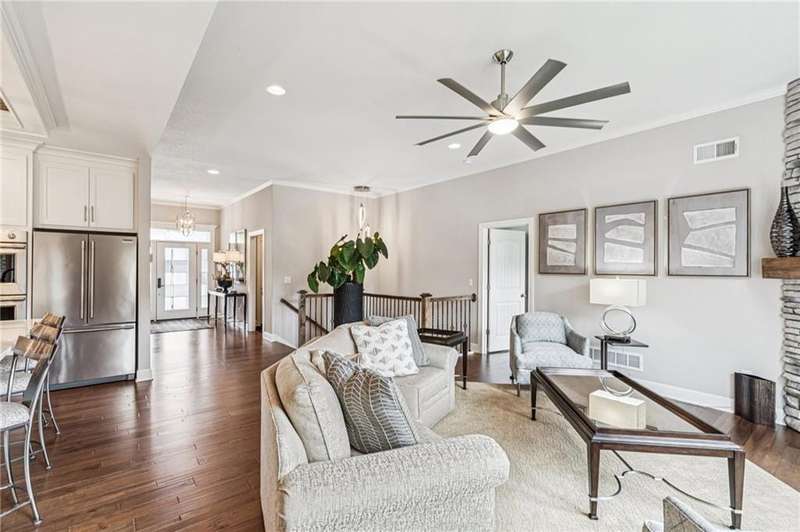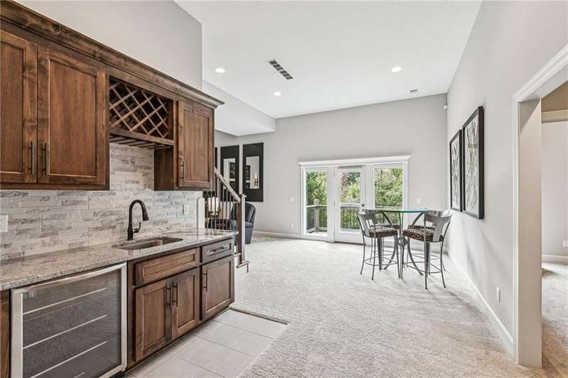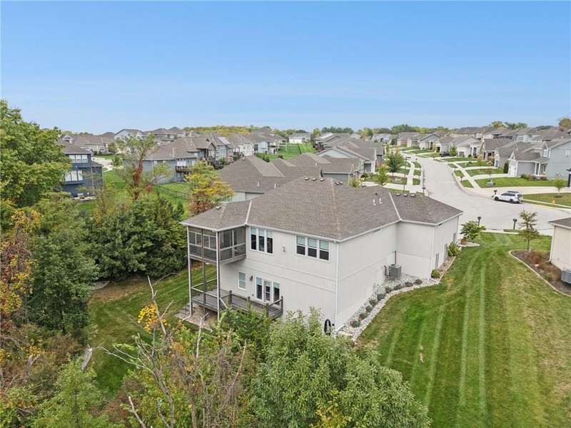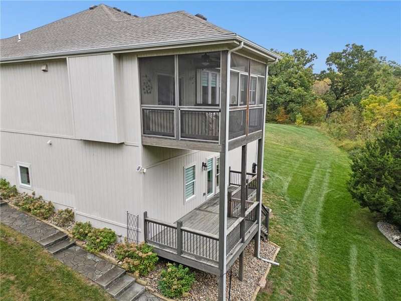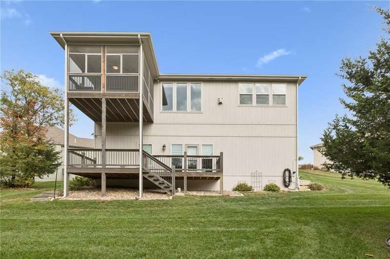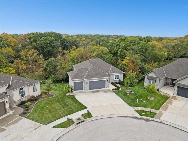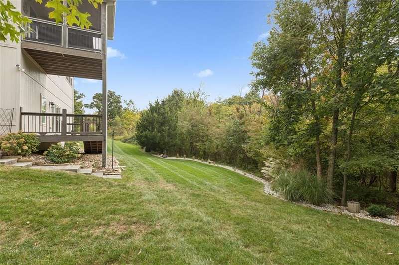 Better than new and incredible privacy!! Premier lot at Chapel Ridge Villas! Professional Interior decorator was involved from the beginning so the finishes are over the top! Cul-de-sac, treed views, custom Hunter Douglas blinds, fashionable wall paper and wall treatments! Wood floors span the main floor, Open Kitchen & dining room with sliding Door to screened in covered deck! Large Granite Island, SS Appliances, painted cabinets and spectacular backsplash w/ upgraded light fixtures, LARGE walk-in-pantry! Primary suite w/ automatic blinds & ceiling fan. Primary Bath features double vanity, make up vanity, walk in shower & walk in closet connected to laundry room. Second Main floor bedroom and full bath w/ tub/shower! Spacious walkout lower-level w/ soaring 12 ft. ceilings, recreation room, Wetbar & custom entertainment center. 3rd and 4th Bedroom w/ full bath. Plenty of storage! Walkout to your beautiful, back yard oasis! Stunning landscaping and enjoy nature at its best! This home will have you falling in love from the minute you pull up! Neighborhood amenities include 2 pools, trails, play area, and club room! Annual HOA $650 + Monthly $160 for lawn maintenance and snow removal. Minutes form popular Creekside Village shopping and restaurants! 435 will get you to the airport in 10 minutes! Don't miss out on this maintenance provided gem in Parkville! This home is amazing so be prepared to be impressed ! LOVE WHERE YOU LIVE!
