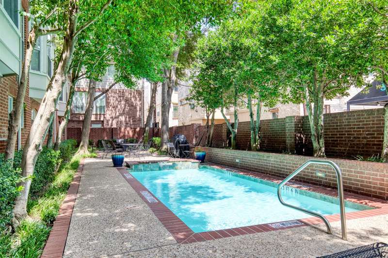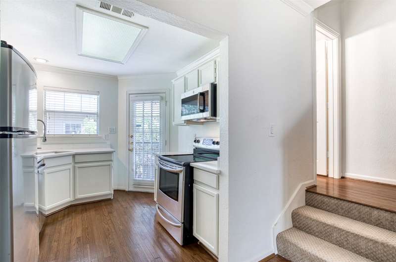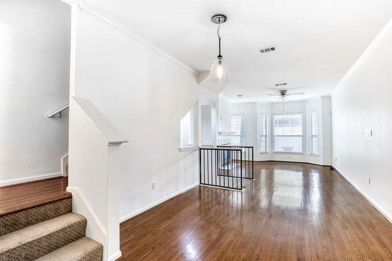 This is a light and bright renovated townhome which includes new appliances, interior paint, kitchen counter tops, lighting fixtures, plumbing fixtures and carpeting. Hardwoods are featured in the living, dining & kitchen areas. The living area features a cozy fireplace and the bay window overlooks the pool and common patio area. Enjoy morning coffee on the balcony and don't miss the large storeroom in the garage which is great for sports equipment, bicycles or use it as a workout room. The location in the area of State and Allen in Uptown makes walking to shops and restaurants very easy.