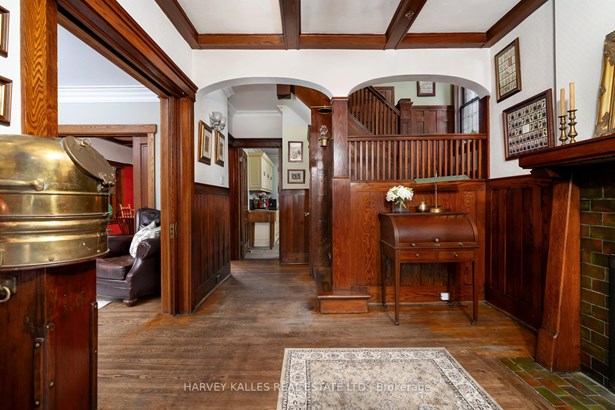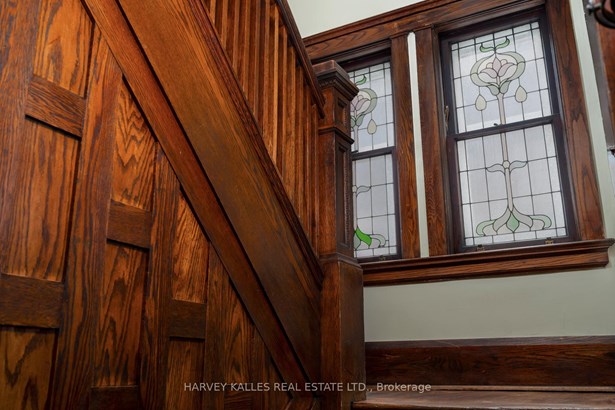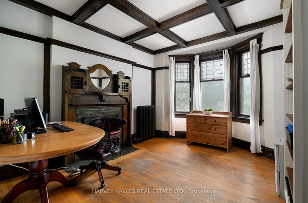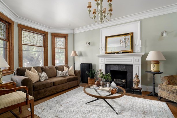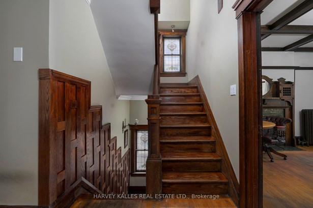 For locals, Indian Road is synonymous with dreamy, turn-of-the-century homes that sit like grand estates along a family-friendly tree-lined street, moments from the gates to the city's greatest playground (High Park) and the energetic Roncesvalles village. Residents in this pocket rarely move, with everything one could need to create a lifetime of memories at your doorstep. This detached 3-storey Edwardian masterpiece celebrates a glamorous era with original panelled millwork, wainscoting, and a handsome staircase. Main level features a wood-clad foyer with gas fireplace, pocket-doors that lead to the family room w/ fireplace and the first of several stained-glass bay-windows, a formal dining room that flows into a large updated kitchen, and a tucked away powder room/WC. The 2nd floor offers three well-proportioned bedrooms and a sunroom/solarium, ideal as an office or extra bedroom. A bathroom with deep soaking tub and walk-in shower services this level. The 3rd floor adds three more generous bedrooms and a 3-piece ensuite bath. Full basement with laundry and additional rough-in for bathroom. Outside, a 32128 ft lot with a wide drive leads to a double detached garage and an ample backyard. Mechanical updates include new plumbing, new hot-water boiler, 200-amp electrical service, and a newer recycled-rubber shingle roof noted for longevity. Live comfortably as is, update to taste, or elevate into a showpiece this address supports it all!