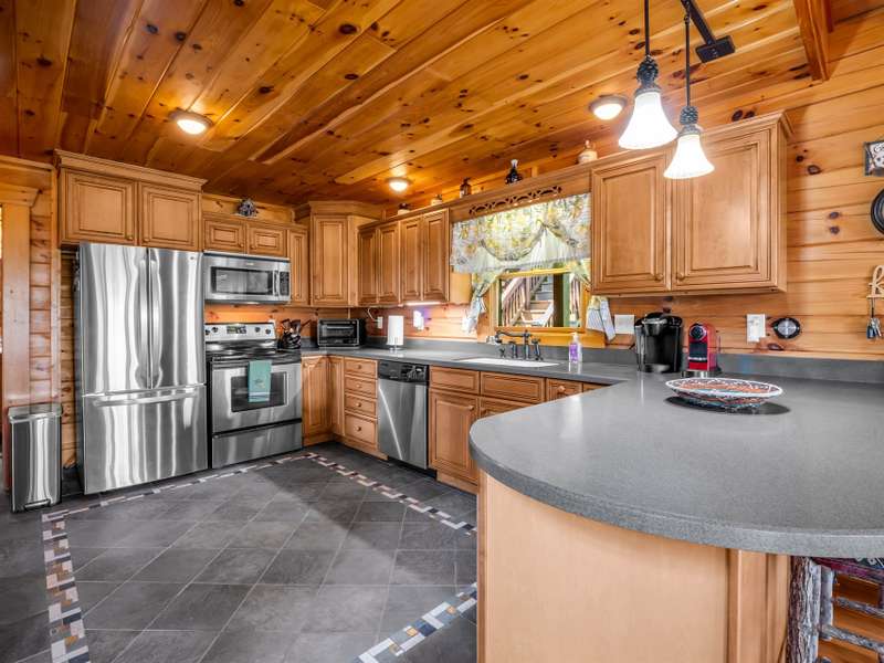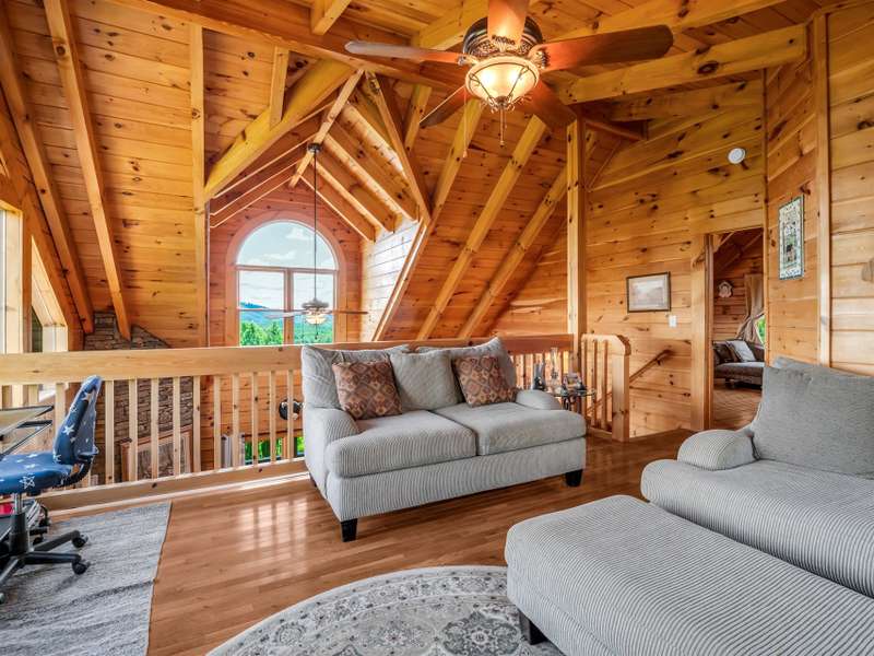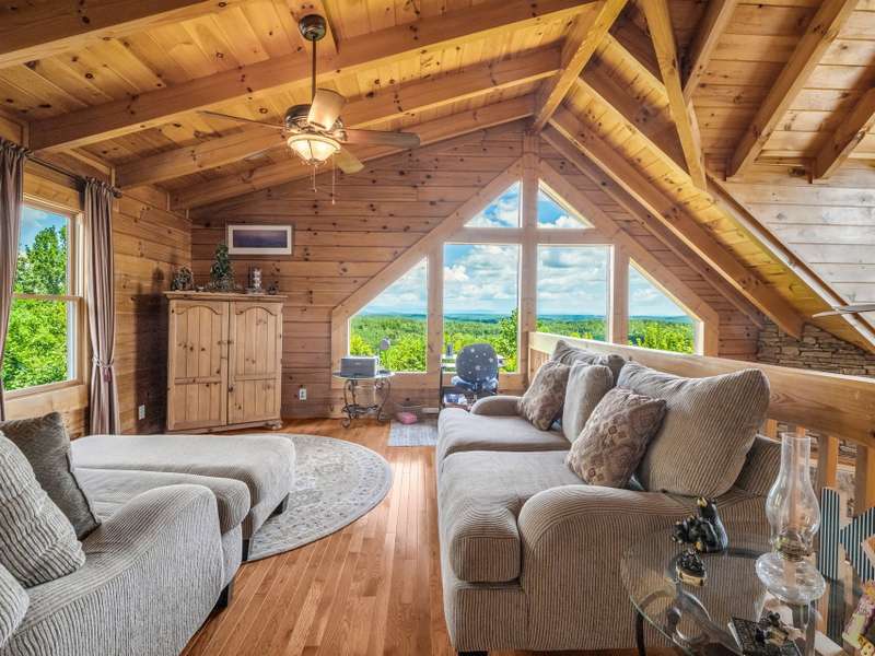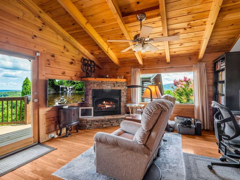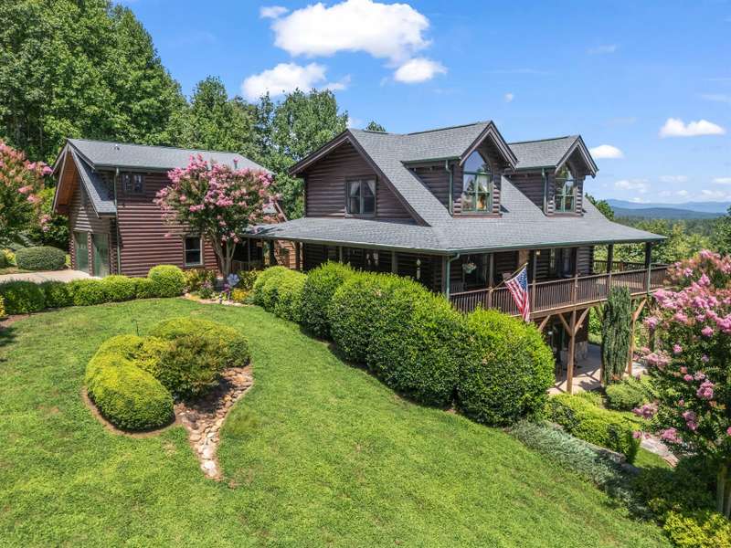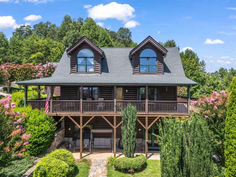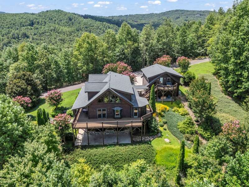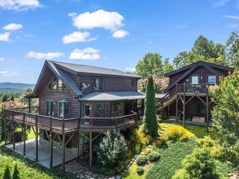 BIG OPN HOUSE THIS SATURDAY 11/01/25. 12-2. FIVE HOUSES WILL BE OPEN ! COME HUNGRY! Enjoy the peace and tranquility of this stunning mountain top retreat. The spectacular views are truly breathtaking. There are year round views of Grandfather Mountain, Pilot Mountain and all the surrounding Blue Ridge Mountains. The morning sunrises and evening sunsets can be viewed from the wraparound covered porches and decks. The 2.29 acres are beautifully landscaped with flowering plants and trees. Upon entering this custom log cabin it is evident this is a one of a kind cabin and location. It is tastefully decorated and immaculately maintained. There is plenty of room for friends and large family gatherings. Above the detached garage is a full apartment with it's own kitchen , fireplace and deck. If you have been wanting a NC mountain top property this is it! The Hidden Lake community features a pool and jetted spa, a fishing and paddling lake , hiking trails and a creekside park. Only 9 miles to I-40 but a world away. Make your NC mountain dreams come true.