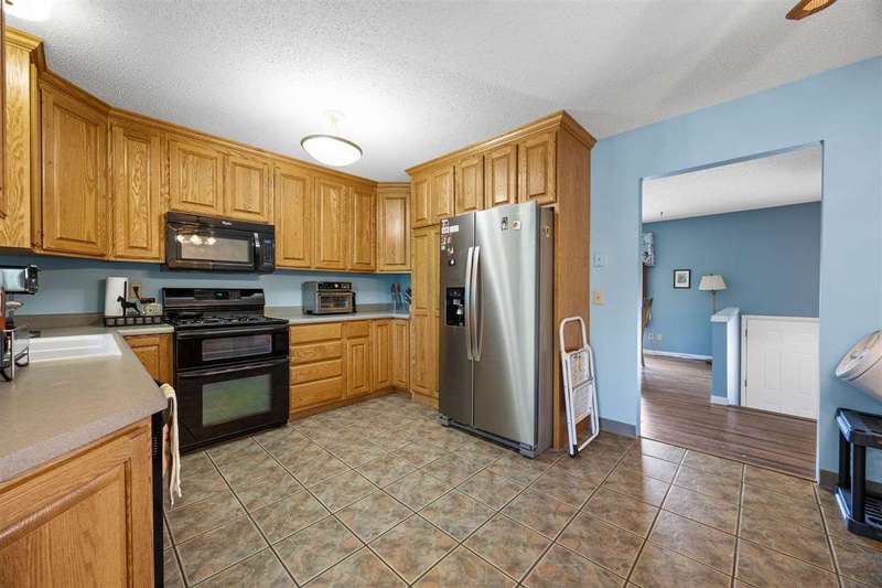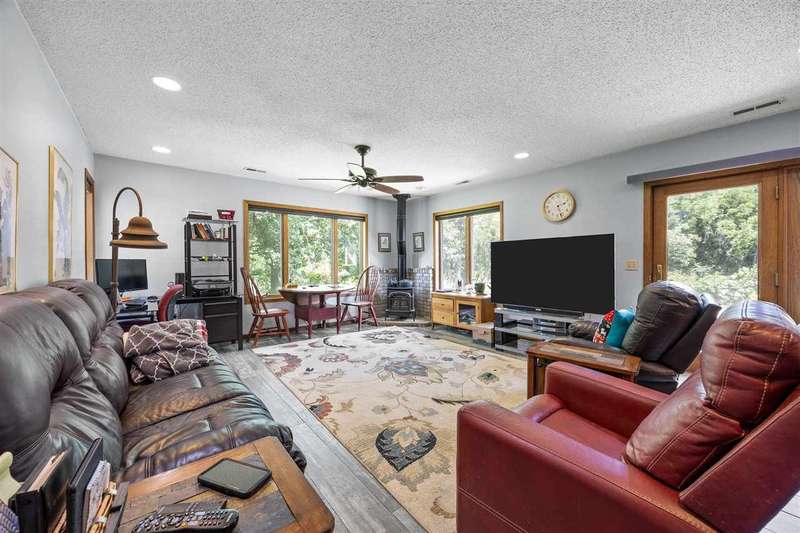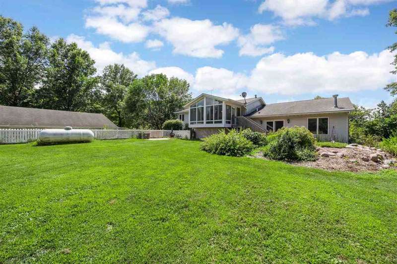 Incredible opportunity in North Liberty with direct access to the reservoir and endless potential for animal lovers, hobbyists, or small-scale farming. This 4-bedroom, 2 full and 2 half bath split-foyer home offers a versatile layout with bamboo flooring, a heated lower level, in-floor heating, and a cozy gas free-standing fireplace in the living room. Step out from the walkout lower level to a spacious patio, or enjoy peaceful views from the three seasons porch just off the dining area. The fully fenced property includes several impressive outbuildings: Building 1 is equipped with heat, A/C, plumbing, a toilet, and built-in animal cages (negotiable); Building 2 offers a rubber floor, heat, cooling, propane, and gas on a separate meter; and Building 3 features a concrete floor, ideal for storage, equipment, or workshop space. With no HOA restrictions and a layout perfectly suited for horses or a variety of animals, this one-of-a-kind property is both functional and full of potential. Washer and dryer are included and being sold as-is. **Various plantings reserved** **Ideal closing date of November 14, 2025**