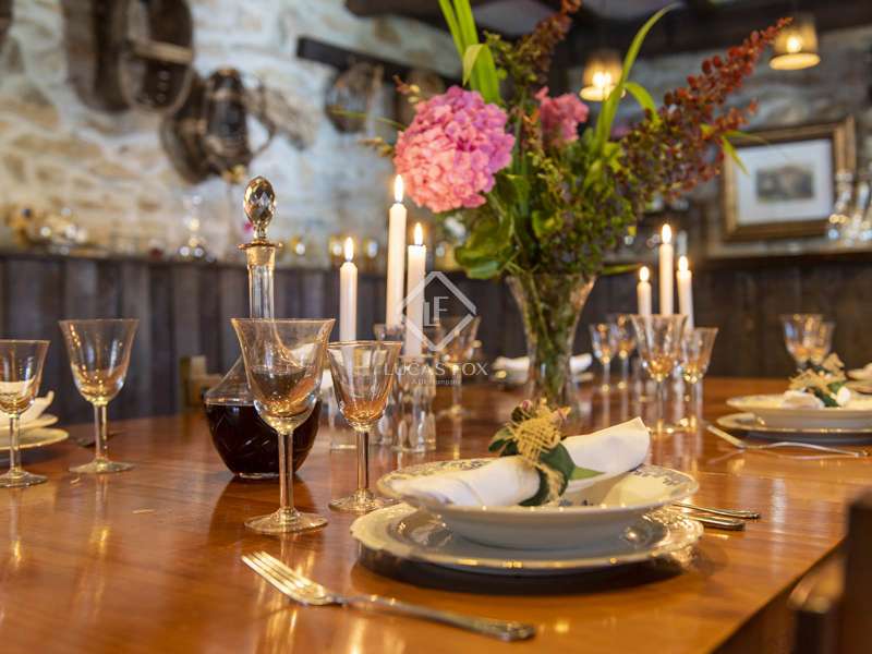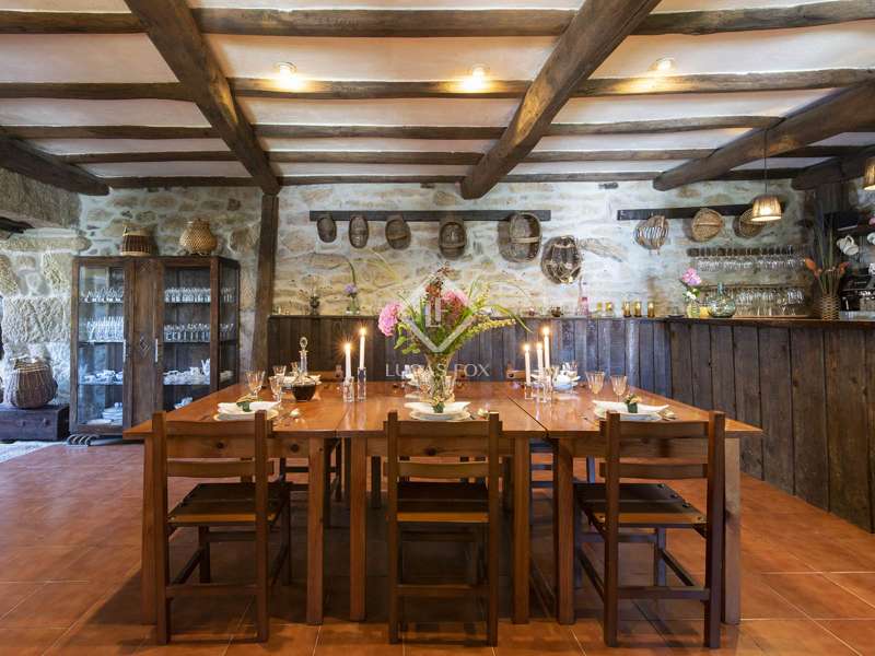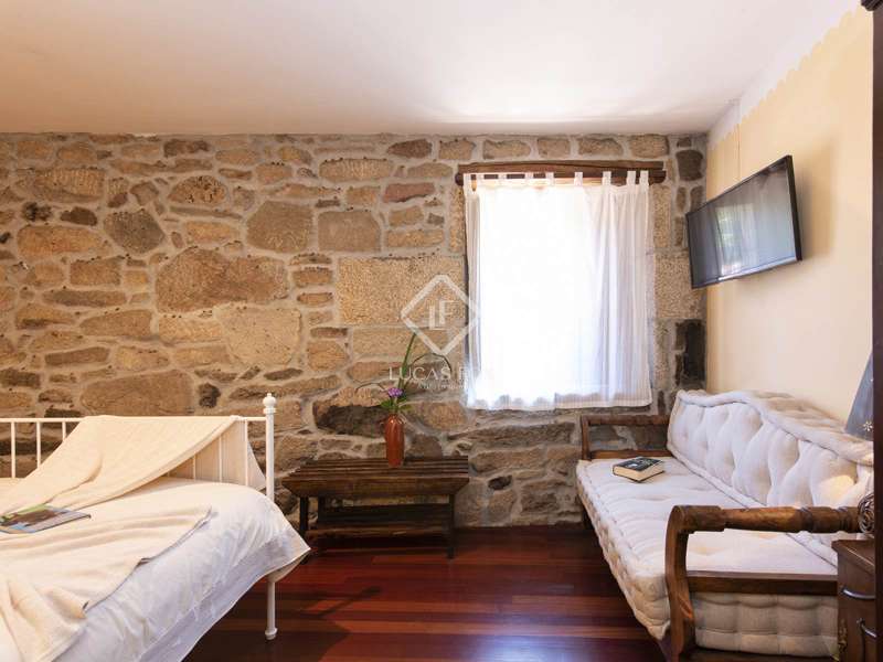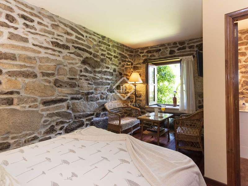 Just a short drive north-east of the lovely town of Allariz in Ourense in Galicia, Spain, we find the beautiful small village of Santa Mariña de Aguas Santas with lots of history and charm. In the small town, we find the charming stone cottage that dates back to the early 1880s, but a few elements date back to the original stones of the Roman church located in the same plaza. You can still find unique features from its original state. The home has been adapted through renovations and updates and converted into a small guest house. Still active and functioning with a repeat guest list, a good rating on web portals and the potential to transform the property into a small restaurant. The property has a welcoming exterior patio which leads to the cottage featuring beautiful landscaping with mature trees, plants, flowers and the historic cross giving it a private and green area for guests. Once inside, we are welcomed by the reception area, where we find the lounge on the right-hand side with a fireplace. On the same level, we see the large dining room area, two guest toilets, commercial kitchen, storage and utility room. On the next level, we find the prominent guests' dining and living rooms offering high ceilings and exposed woodwork—an area filled with charm, many original features and character. On the first floor, we find a sleeping area for guests. On this level, we find 6 double en-suite bedrooms and a small sitting area, which leads to the upper outer garden section. The private residence is on the top floor, which can be converted into more rental bedrooms. Here we find a small lounge area, 4 bedrooms and 2 bathrooms. Outside, we find an easy-to-maintain garden area. There is an oversized garage and storage area, which need to be updated. This can be used for storage or converted into more guest space. The property is on a hilltop surrounded by lush areas, outdoor seating to relax or read a book, lovely pathways, and fabulous all-season plants and flowers. This property would be suitable for investors looking to purchase and generate a rental income from its active business or anyone looking for a lovely charming cottage to live in and, at the same time, rent the guest house to guests and have an active rental business. The property is sold with furniture, appliances and an active business.