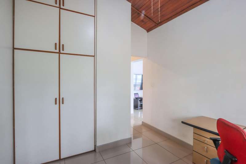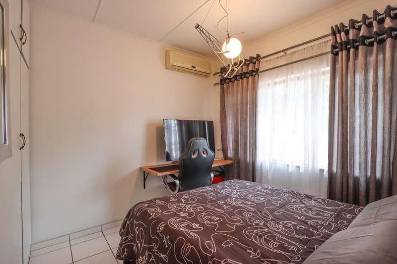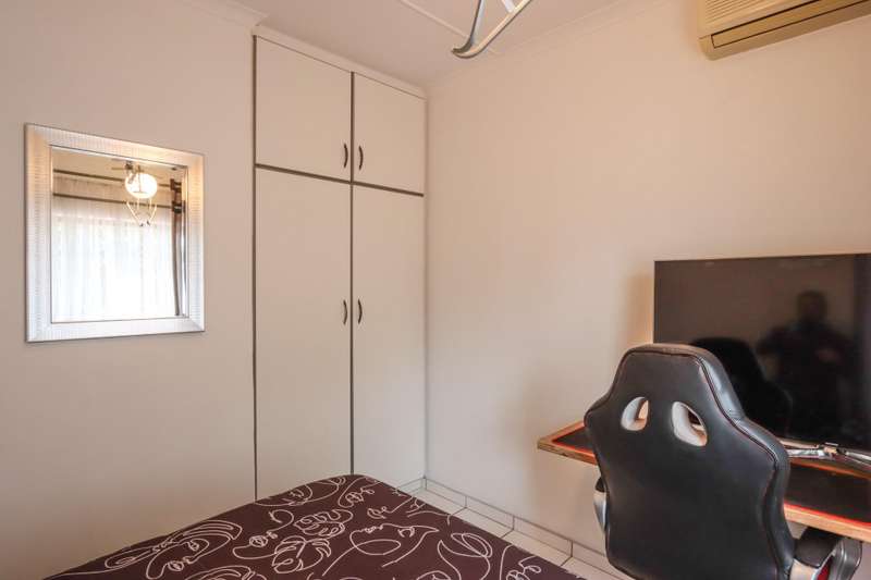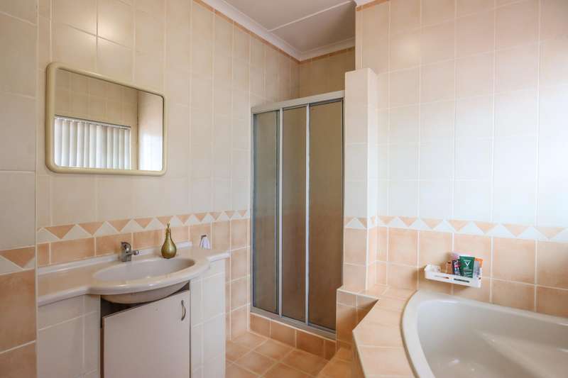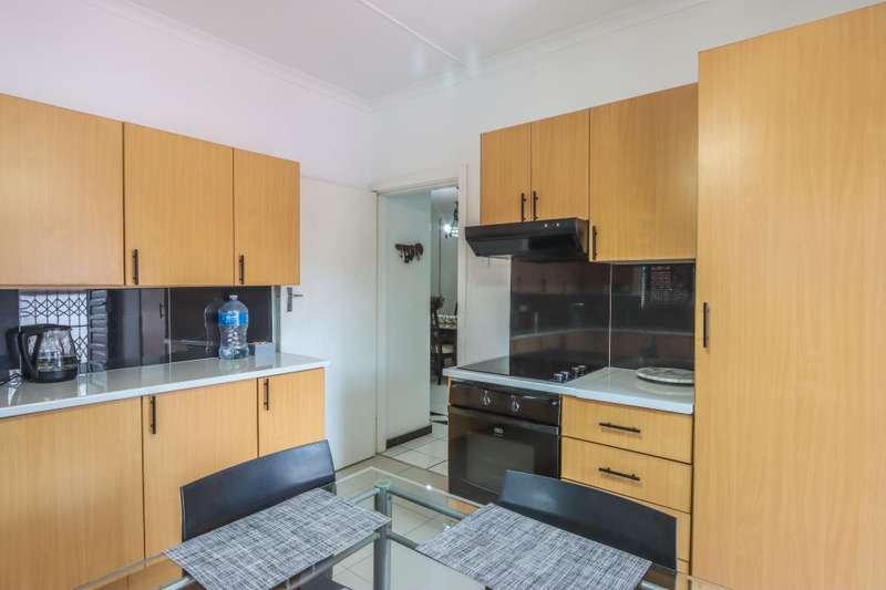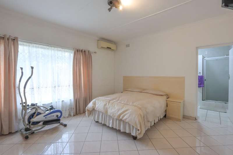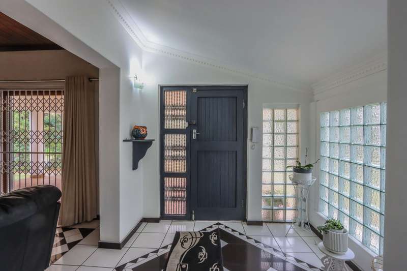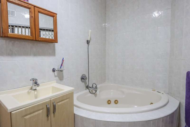 The moment you see this home from the electric gates, you will know, most definitely, that you should be the owner. From its pale grey roof, to the beautiful glistening white walls and modern pale grey tiling around the unusually designed pool, everything matches, all white and grey. You enter into a lovely glass hallway, through a matching grey front door and on the right hand side is a spacious, square lounge, providing a comfortable space for relaxing or entertaining your family and visitors. A large picture window offers a view of the enormous covered patio and pool. On the left side you will notice the separate dining room, perfect for all your happy meals..There is a gourmet, square kitchen, that is a chef's delight, beautifully fitted out, offering lots of storage and functionally for all your culinary requirements, with granite work tops and lovely wooden cupboards and big enough for a family breakfast table in the centre. Five double sized bedrooms, offering modern built in cupboards are available, four down a wide passageway and the fifth one at the other end of the house. There are two modern bathrooms, one being an en-suite in the main bedroom, that has its very own spa bath. .Also at the other end of the house, is another large lounge, measuring the whole width of the house, close to this is a perfect area for a prayer room or a guest bathroom. Going out of the back.door, there is a staff room with a shower and toilet that could also be another guest suite, if desired. The garden and paving around this house is exemplary, so neat and beautifully done. I've not finished yet, there is also a big double garage to house your precious vehicles in, with matching grey doors. It is quite a large piece of ground with a wide frontage and the owner has installed work of the art beams and alarms all around for your perfect safety. If something special is what you are looking for, then this is it. Give me a call and I will arrange an appointment to view.