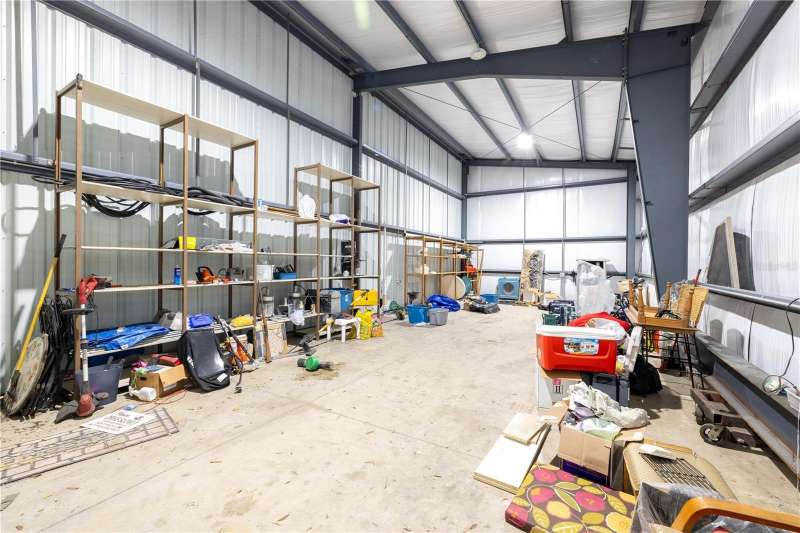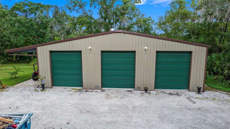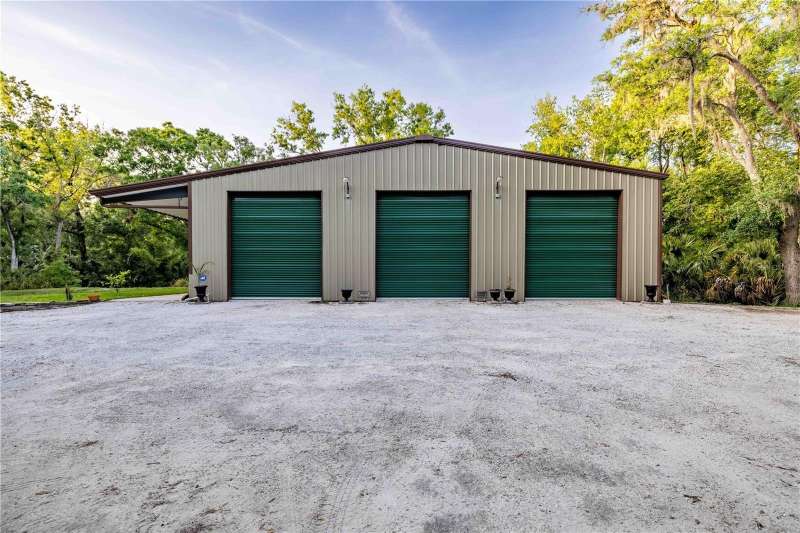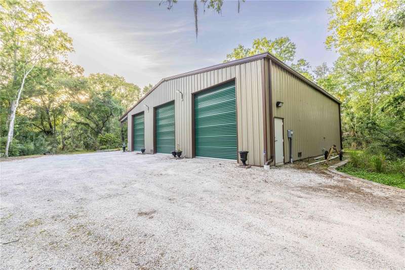 Build Your Dream Home on 5.7 Acres Overlooking a Pond—Complete with Guest House, 3-Bay Workshop & More! Endless opportunities await on this scenic 5.7-acre property. Whether you’re ready to create your custom estate or enjoy the thoughtfully designed guest house. This property offers comfort, flexibility, and room to grow. The guest house, built with solid poured concrete reinforced with steel and rebar, is exceptionally well-constructed and designed. On the main level, you’ll find a spacious office with custom built-in cabinetry, a bedroom, and 2 sitting areas—one with a Murphy bed that can easily convert into a private suite with its own kitchenette and private entrance. Plantation shutters add timeless elegance, while a bright sitting room opens to beautifully landscaped grounds featuring a swim spa, expansive deck, and an outdoor kitchen. The custom Blaze grill with smoker is set within a built-in enclosure complete with a protective metal door—perfect for entertaining in any season. The second level of the guest house feels like a private residence of its own, complete with a full kitchen, living room, dining space, private balcony, a generously sized bedroom with two walk-in closets, and a full bathroom. Huge garage on the house with a kitchen area complete with a dishwasher located on an upper level of the garage and right by the grilling area! Guest house has an incredible garage with tons of storage and can accomodate 2 RV's. Car enthusiasts, light industrial work, and hobbyists will also love the huge metal 3-bay workshop with its own bathroom. This versatile building is ideal for storing cars, RVs, boats, or lawn/large equipment, and also includes an upper-level storage loft that could double as an office. An additional covered side bay provides even more space for equipment. With 5.7 acres of open land and a serene pond backdrop, there’s plenty of room for equestrian use, gardens, or building your dream residence. This property offers the perfect blend of function, leisure, and future potential. The metal roof on guest house was replaced in 2022!