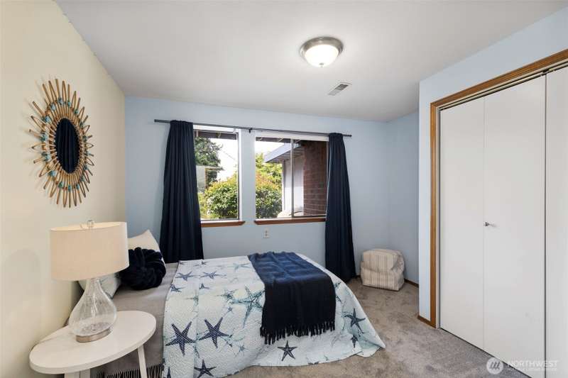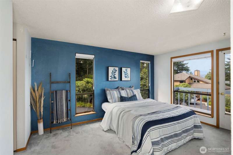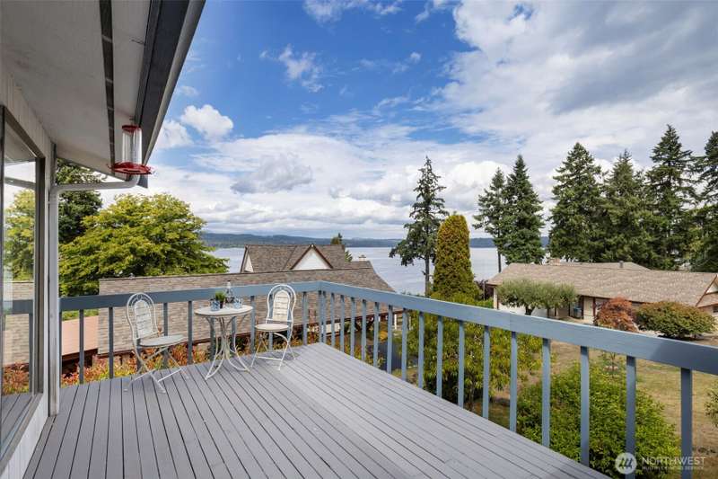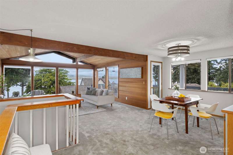 HUGE PRICE IMPROVEMENT! Classic mid-century modern rambler with finished daylight basement, perfect for multi-generational living or separate levels to entertain! Vaulted, inlaid wood ceilings frame a spacious great room with propane fireplace for added warmth. Panoramic western views of Hood Canal and the Olympic Mountains through floor-to-ceiling windows and sun-drenched decks for BBQ's & gatherings. Nestled on a private dead-end road & surrounded by premier waterfront properties in the desirable Lakeness area in the sought after Vinland community, this home offers quiet seclusion, space to garden, & stunning sunsets. Call your real estate professional today to schedule a private showing for this rare opportunity for waterview property!!!