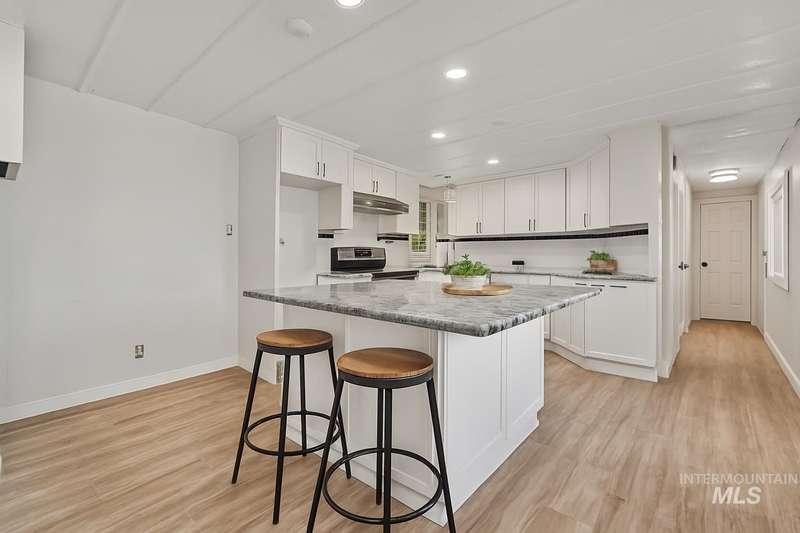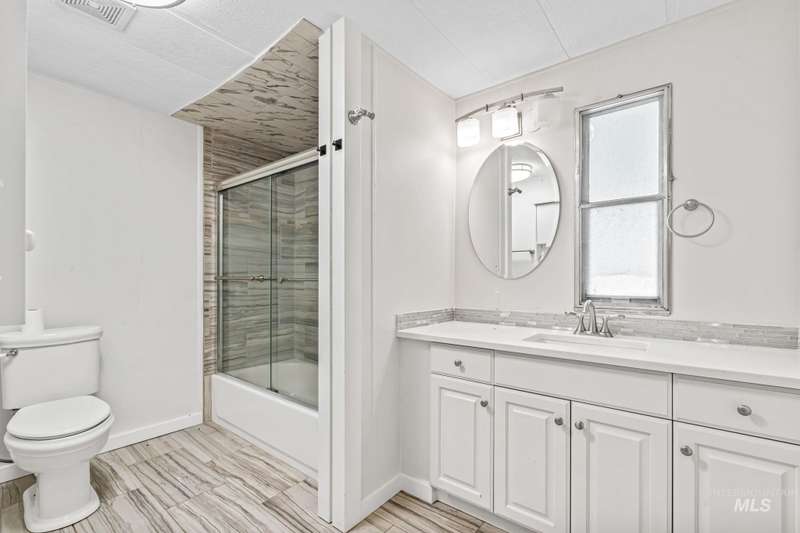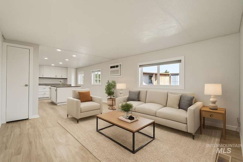 Beautifully Remodeled Home in Caldwell! Step inside this charming 2-bed, 2-bath home featuring 924 sq ft of stylish living space. The open layout boasts new LVP flooring throughout, a modern kitchen with white shaker cabinets, granite-style counters, and stainless-steel stove. Both bathrooms have been tastefully remodeled, offering a clean and updated look. Enjoy added versatility with an exterior bonus room—perfect for a workshop, hobby space, or storage. The fully fenced yard provides privacy and includes a small shed for extra storage. Cooling is provided by window A/C units and efficient electric heating keeps you comfortable year-round. Conveniently located near shopping, dining, and easy freeway access—this move-in-ready home offers tremendous value in a great location! Lots of space for car parking and trailer. Property is a manufacture home in a rented space at Indian Creek Estates. Space rent is $400.00 monthly. Seller offering a $4,800 credits towards closing costs or park rent in advance. Schedule your showing today.