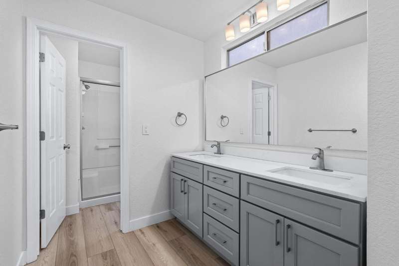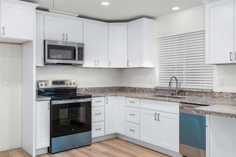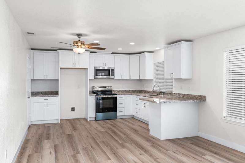 A Must See! Built in 1992! Renovated & Remodeled throughout! NEW Comp Roof, NEW Gutters, NEW Kitchen cabinets, NEW countertops, NEW Appliances, NEW Vanity & Tops in Bathrooms, NEW flooring, NEW Interior & Exterior Paint, NEW Light Fixtures & Window Furnishing, etc! Perfect for 1st time buyer or Investment property! Come view this nice 2 story home with White Shaker style cabinets, stainless-steel appliances & complimented with beautiful granite counter tops. Space in kitchen for dining or use island for dining bar! Nice size living room w/LVF throughout, fireplace is nicely painted w/glass doors. Half bath downstairs as well! Upstairs is roomy with large Master Suite with 2 closets that flows into Master Bath with dual sinks and stall shower. 2 other bedrooms are of good size and all with ceiling fans. Nice Hall Bath as well! Laundry room is upstairs w/gas or electric hook up! Low maintenance backyard that has been cemented and bricked. Near shopping and schools! Do not miss this one!