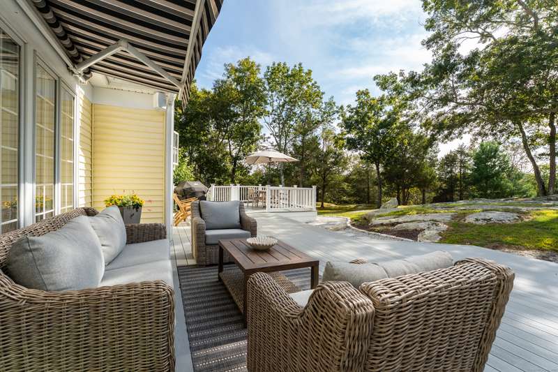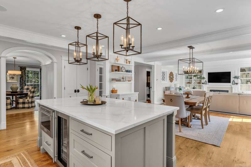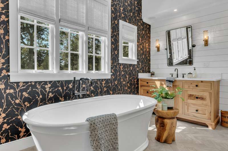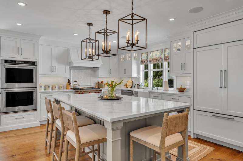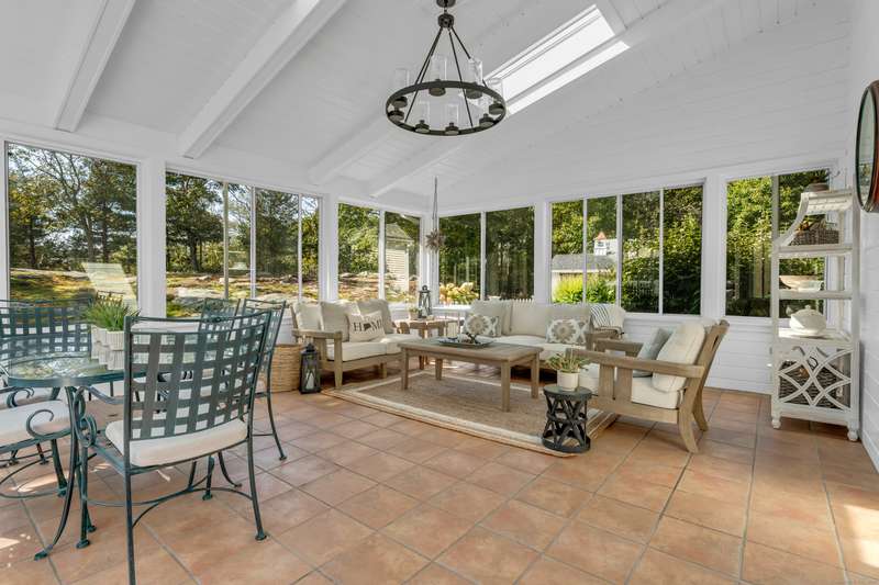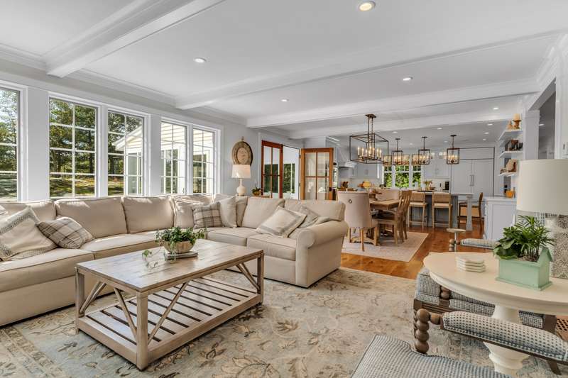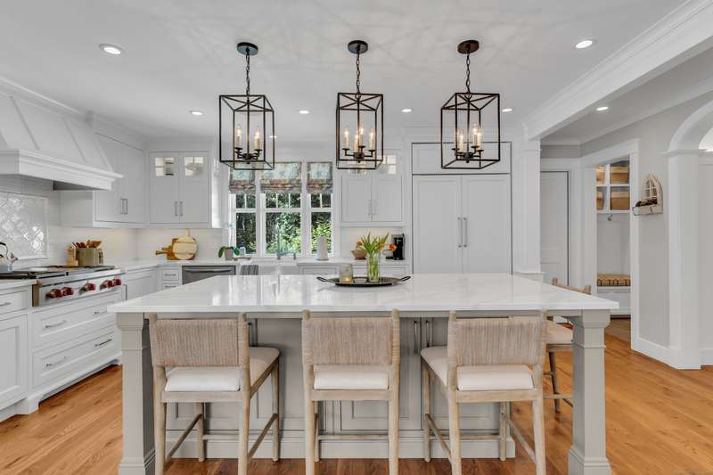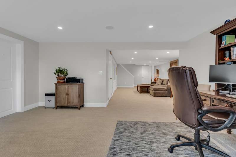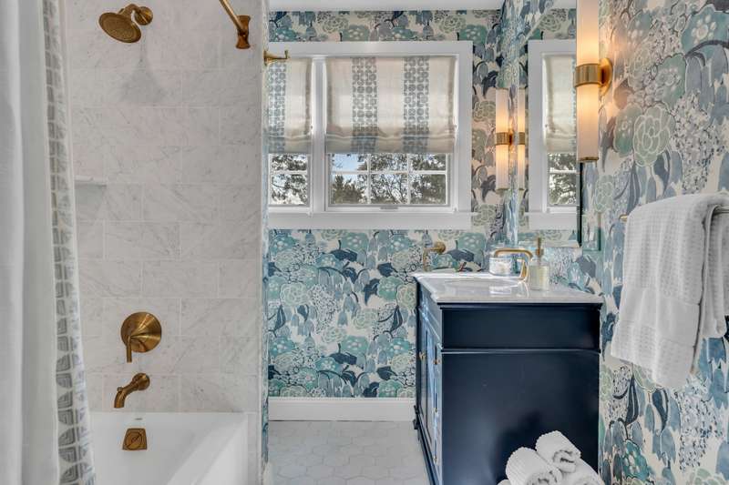 Multiple Offers Received!! Offer Deadline Sunday at 3:00! This charming, impeccably renovated Mordecai-built Cape in the Guilford Lakes district offers 4 beds and 3.1 baths, including the rare luxury of two primary suites-one on the main level and one upstairs-each with beautifully updated bathrooms. Two more generously sized bedrooms and a third renovated bath complete the second floor. The home underwent a major renovation in 2018, featuring a stunning Covenant kitchen with an oversized quartz island, double wall ovens, propane cooktop with four burners plus griddle, and custom lighting designed for both beauty and function. A cozy three-season porch with double antique wood doors extends the living space and overlooks the picturesque yard dotted with natural outcroppings and beautiful plantings. The finished walkout basement (new carpet in 2023) offers even more living space, complete with custom built-in bookcases-ideal for a media room, home office, or library. Outdoor living sh