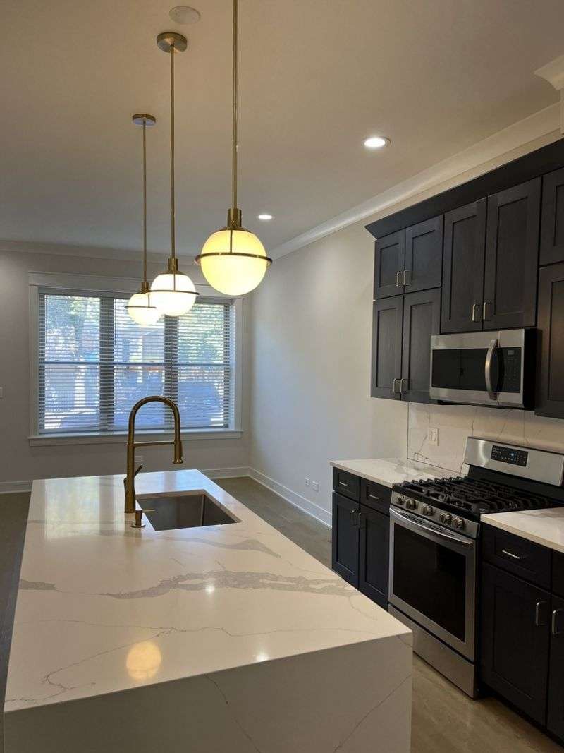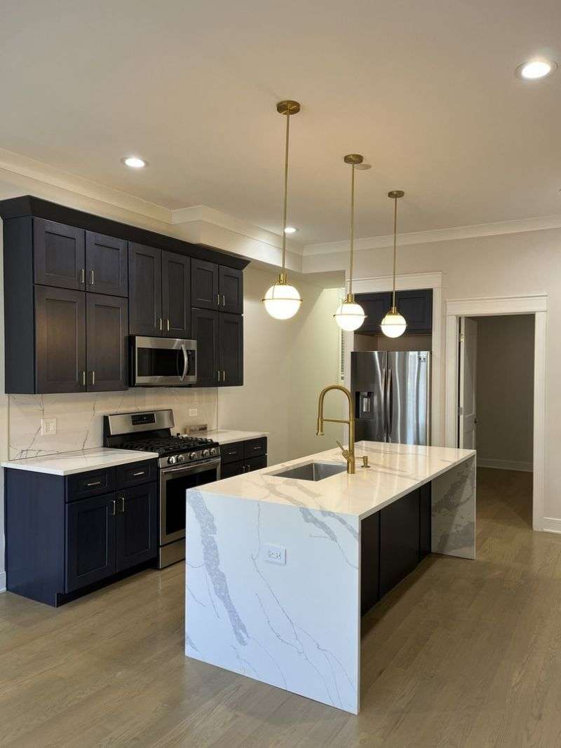 Check out the VIRTUAL TOUR! Discover this stunning four bedrooms, three bathrooms duplex down in one of Chicago's most desirable neighborhoods - West Town! Perfectly blending modern style with everyday comfort, this home offers an open and spacious layout ideal for both entertaining and daily living. Step inside to find high ceilings, beautiful hardwood floors, and large windows that fill the space with natural light. The chef's kitchen features Samsung stainless steel appliances, a quartz waterfall island, and ample cabinet space - perfect for culinary enthusiasts. The main level includes a large living and dining area, two full bathrooms, and two spacious bedrooms (including one ensuite). The lower level offers a cozy family room, two additional bedrooms, and a bathroom, along with in-unit laundry and abundant storage. Enjoy central air, newer windows, and a location that simply can't be beat - just minutes to downtown, expressways, restaurants, cafes, and all the vibrant energy West Town has to offer! Don't miss your chance to make this beautiful home yours! Income has to be 3x monthly rent. Credit score 700+